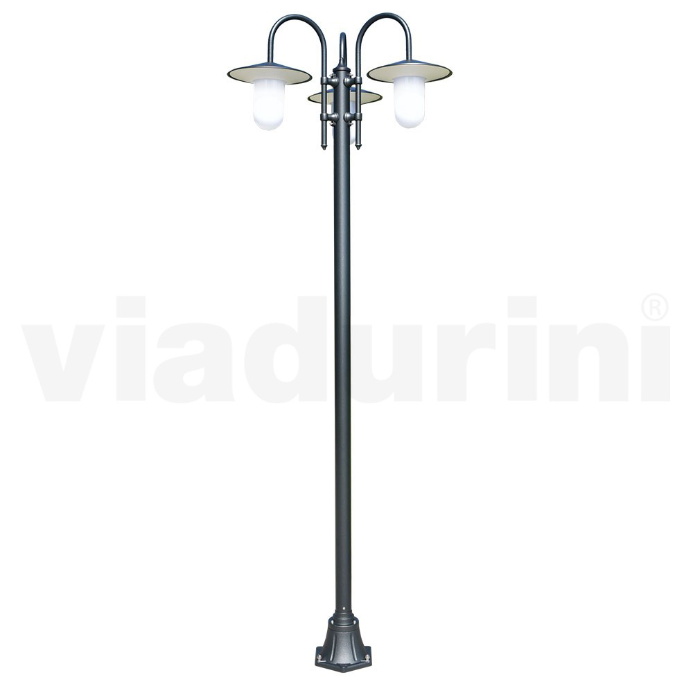 Lampa stradala vintage cu 3 lumini din aluminiu si policarbonat Made in Italy.
