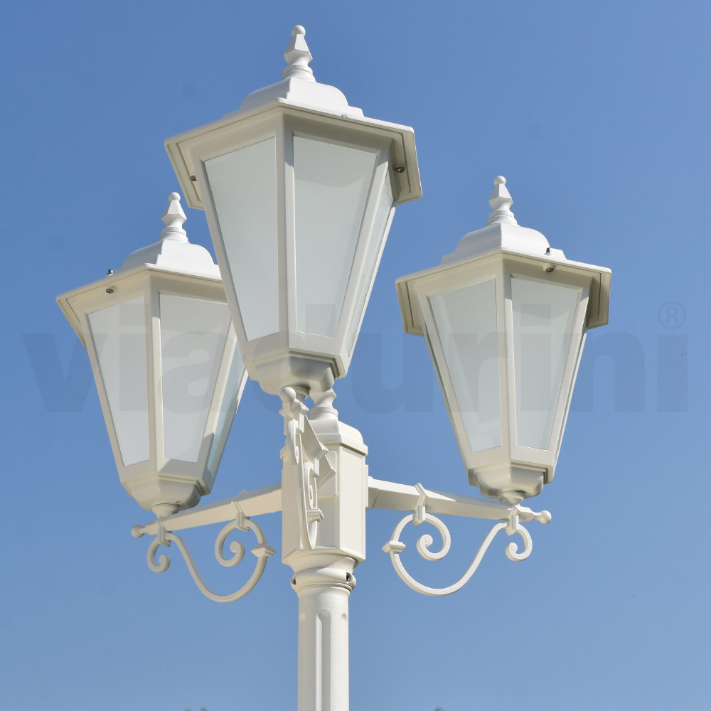 Lampa stradala din aluminiu cu 3 lumini cu difuzor din sticla Made in Italy, stil vintage.