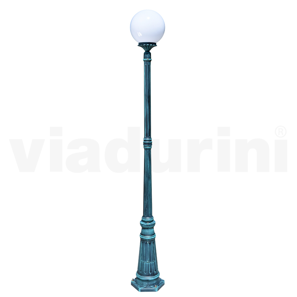 Lampa de gradina realizata cu structura din aluminiu turnat sub presiune si difuzor sfera acrilic opal , in intregime Made in Italy.