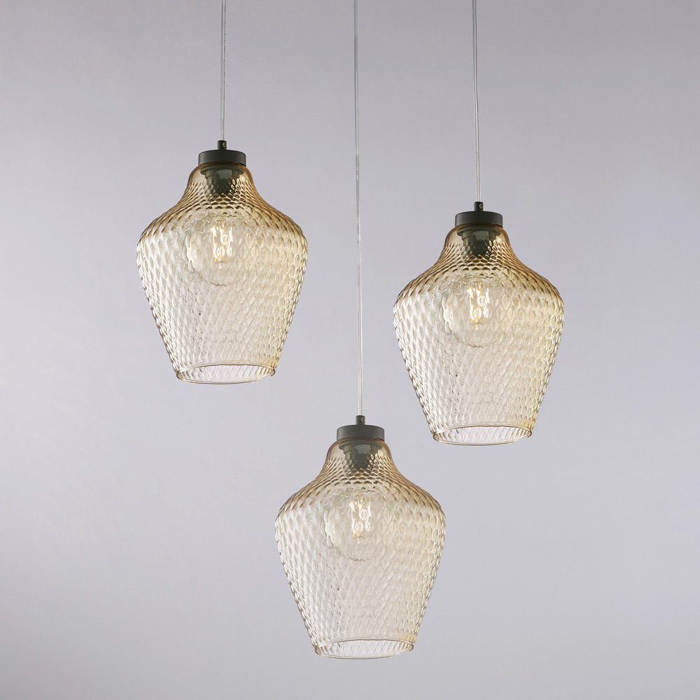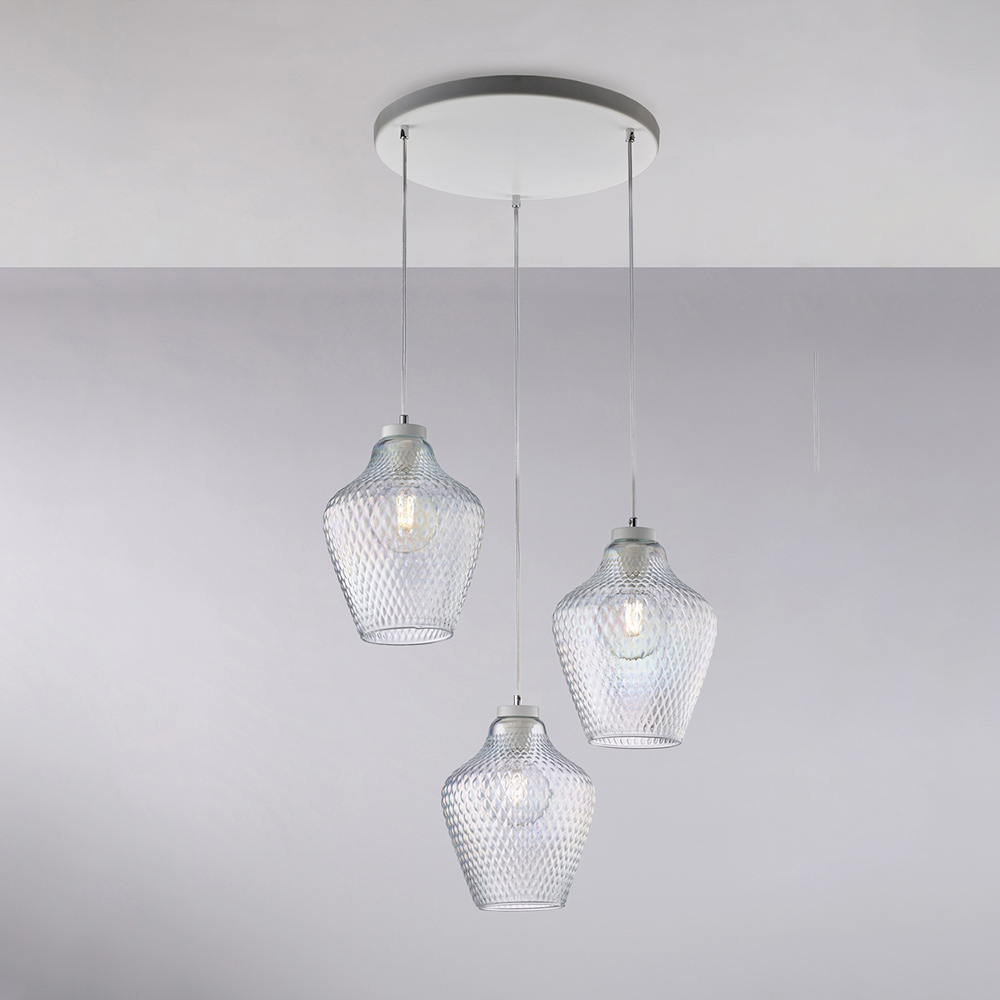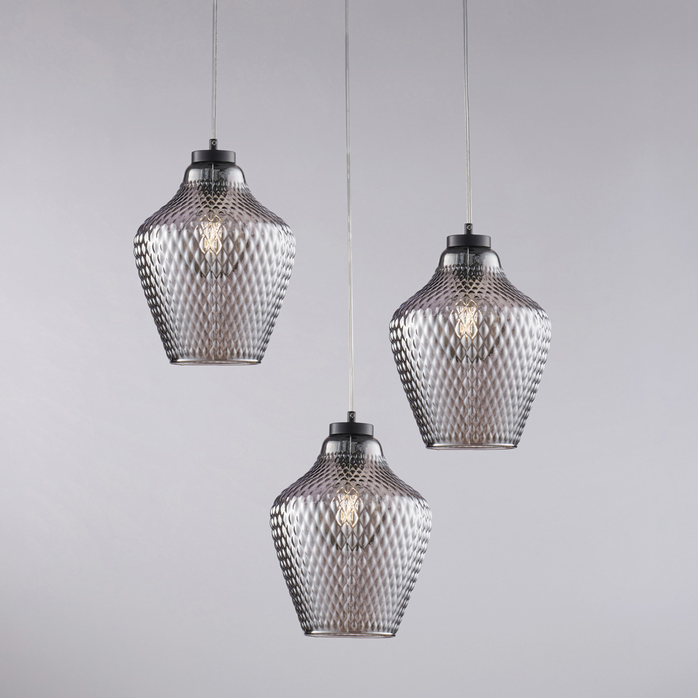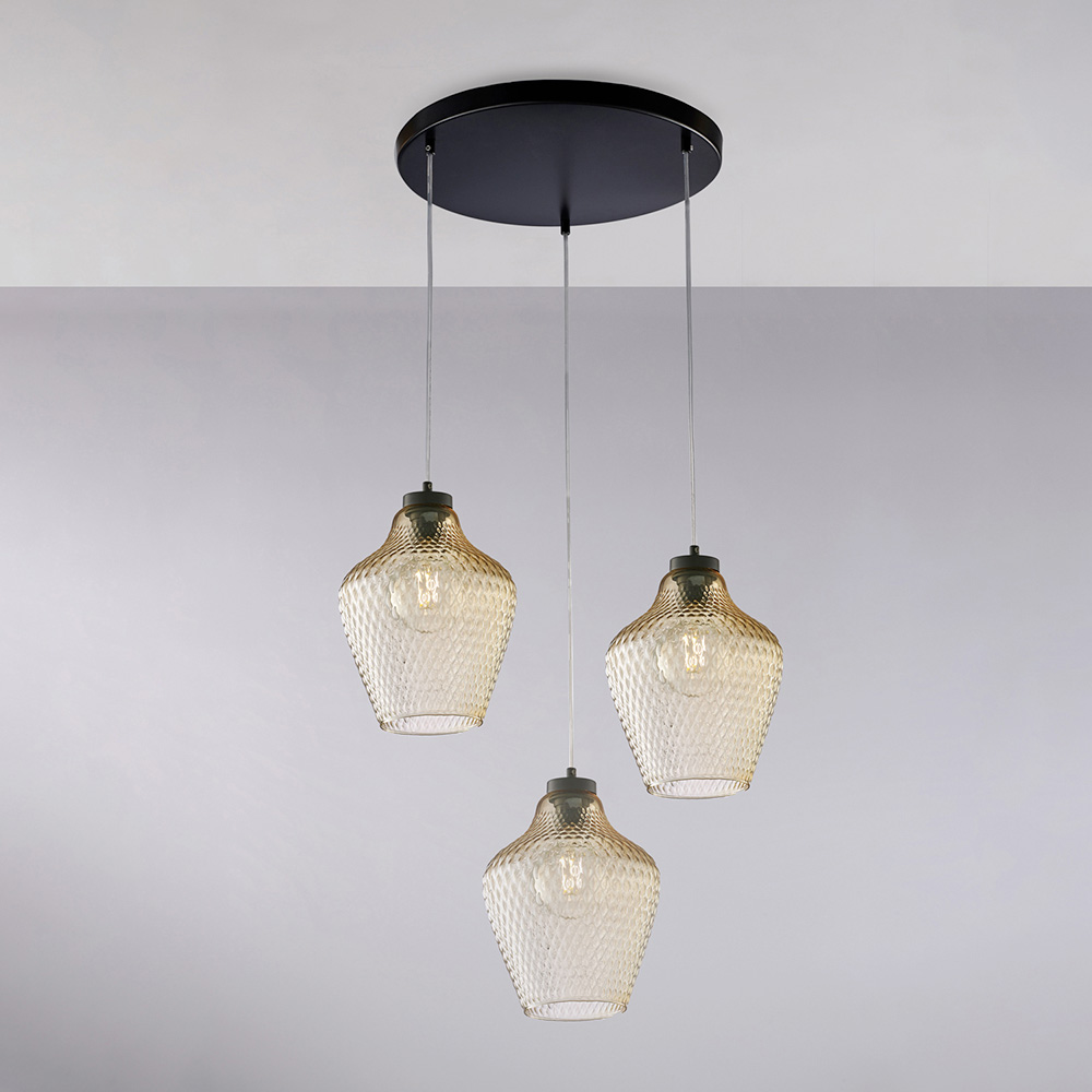 Lampă suspendată Alnitak cu 3 becuri din sticlă și metal