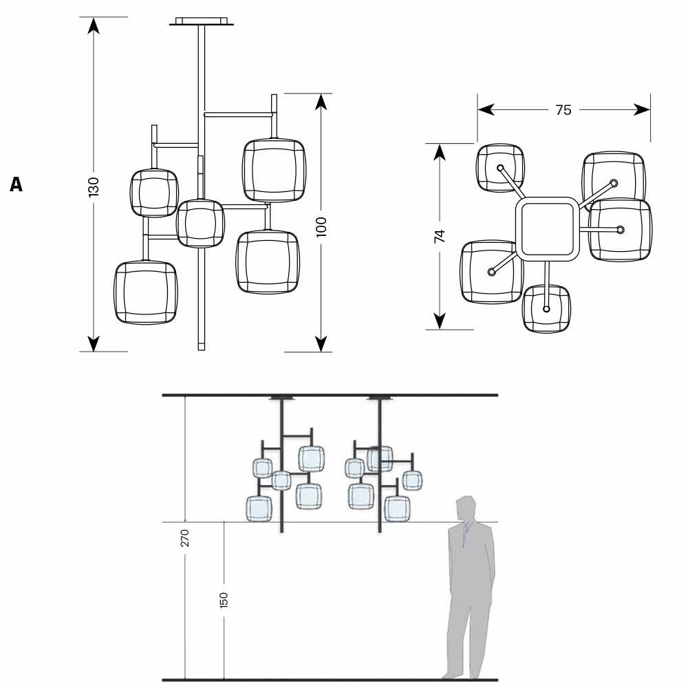sticlă transparentă suflată, în funcție de mărimea aleasă. De asemenea, ideal pentru instalații multiple la diferite înălțimi, oferind astfel