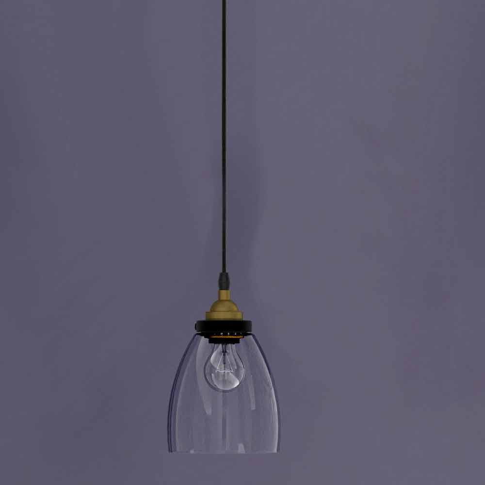 Lampă suspendată de design din sticlă transparentă și metal Made in Italy.