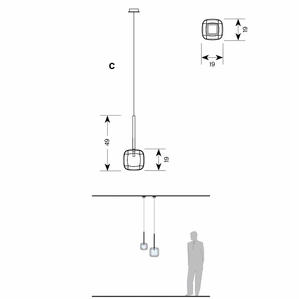 - L 19 x P 19 x H 49 cm;