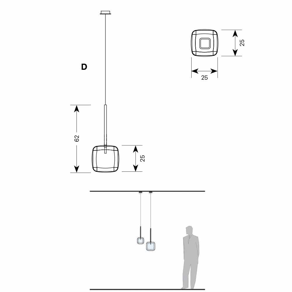 - L 25 x P 25 x H 62 cm.