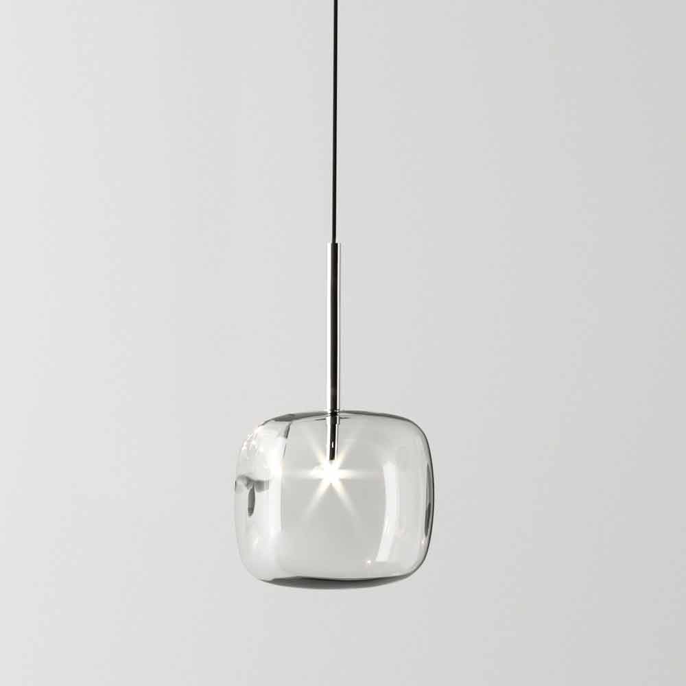 Lampă suspendată design din metal lustruit cu cub de sticlă rotunjit Made in Italy.