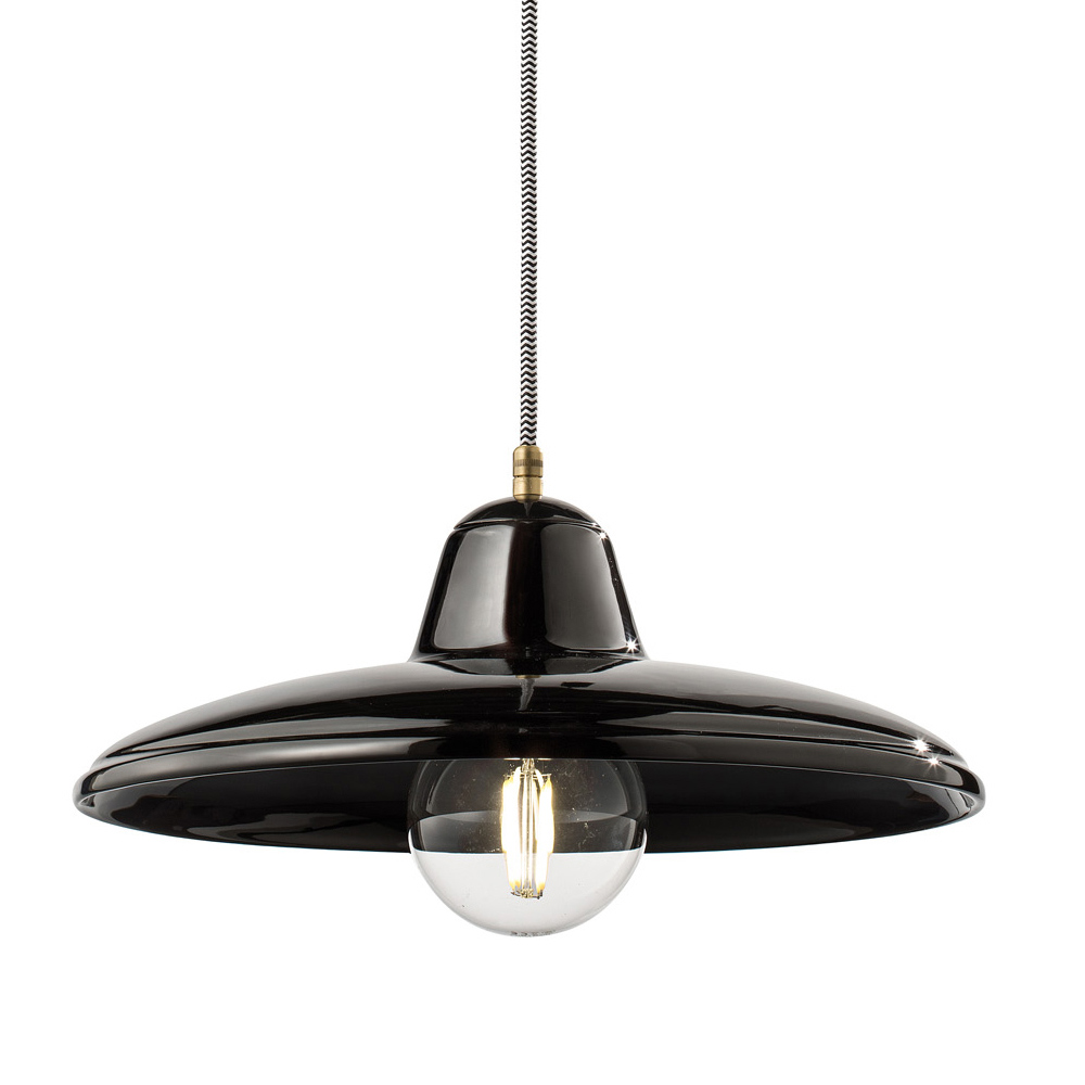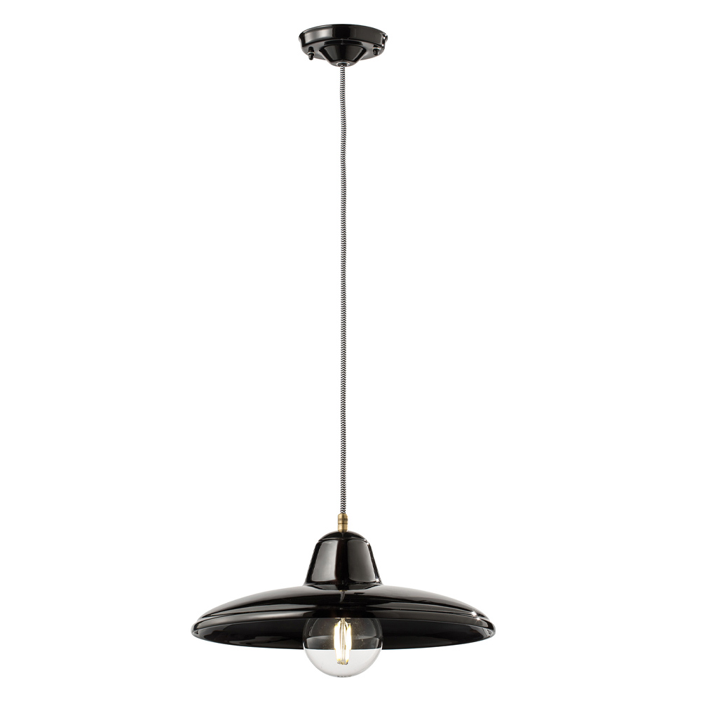 Lampa cu suspendare din ceramica neagra si fier, stil retro fabricata in Italia de Ferroluce.