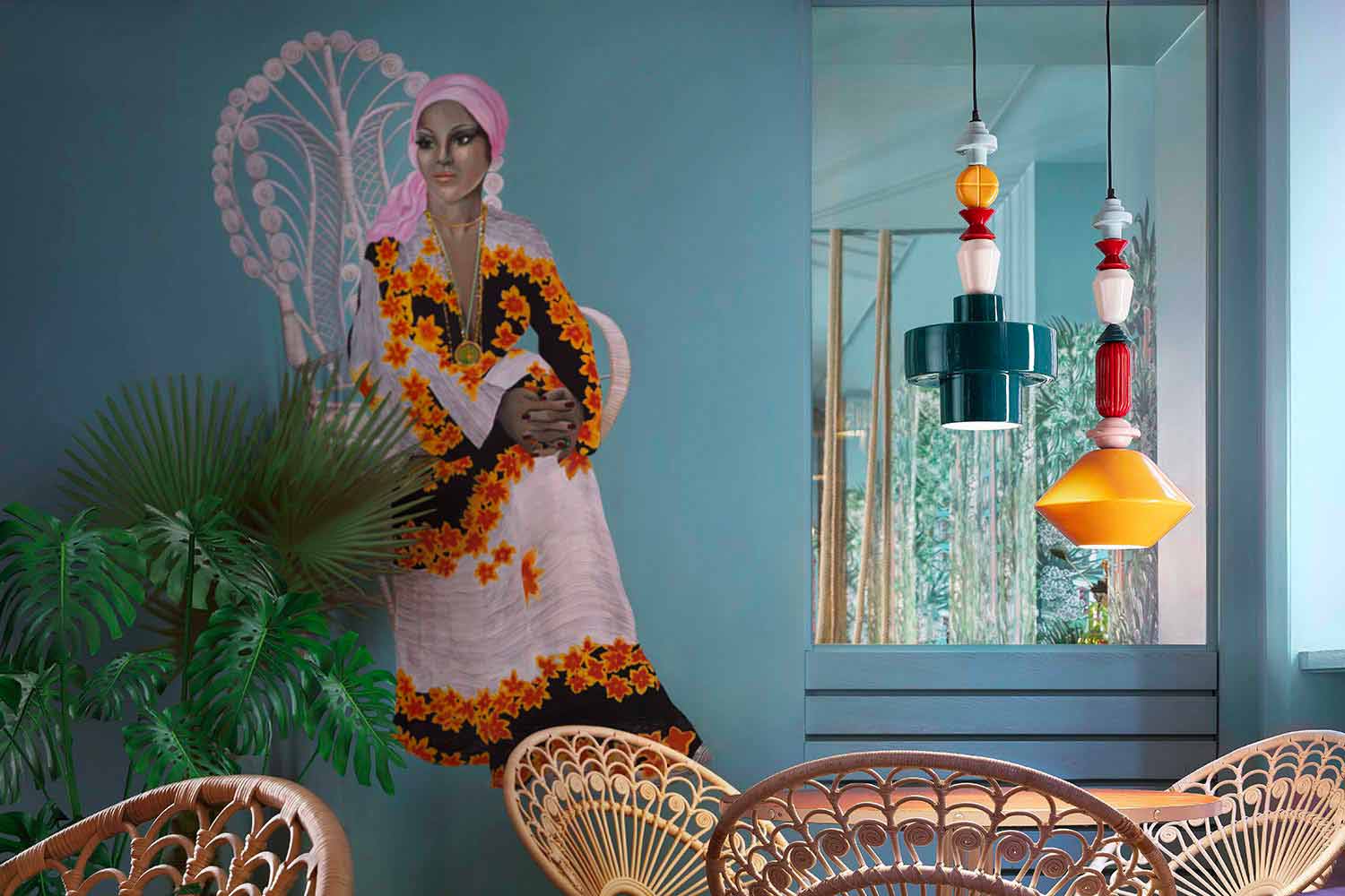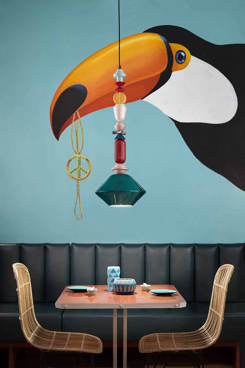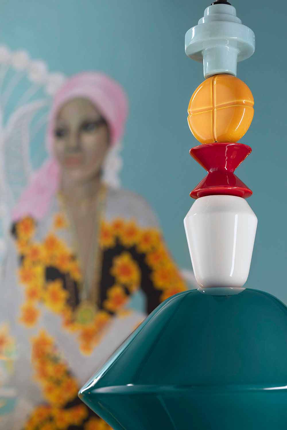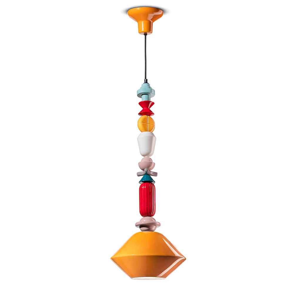 Lariat este o redare unică și deosebită a elementelor ceramice multicolore care se succed vertical până la difuzorul central.