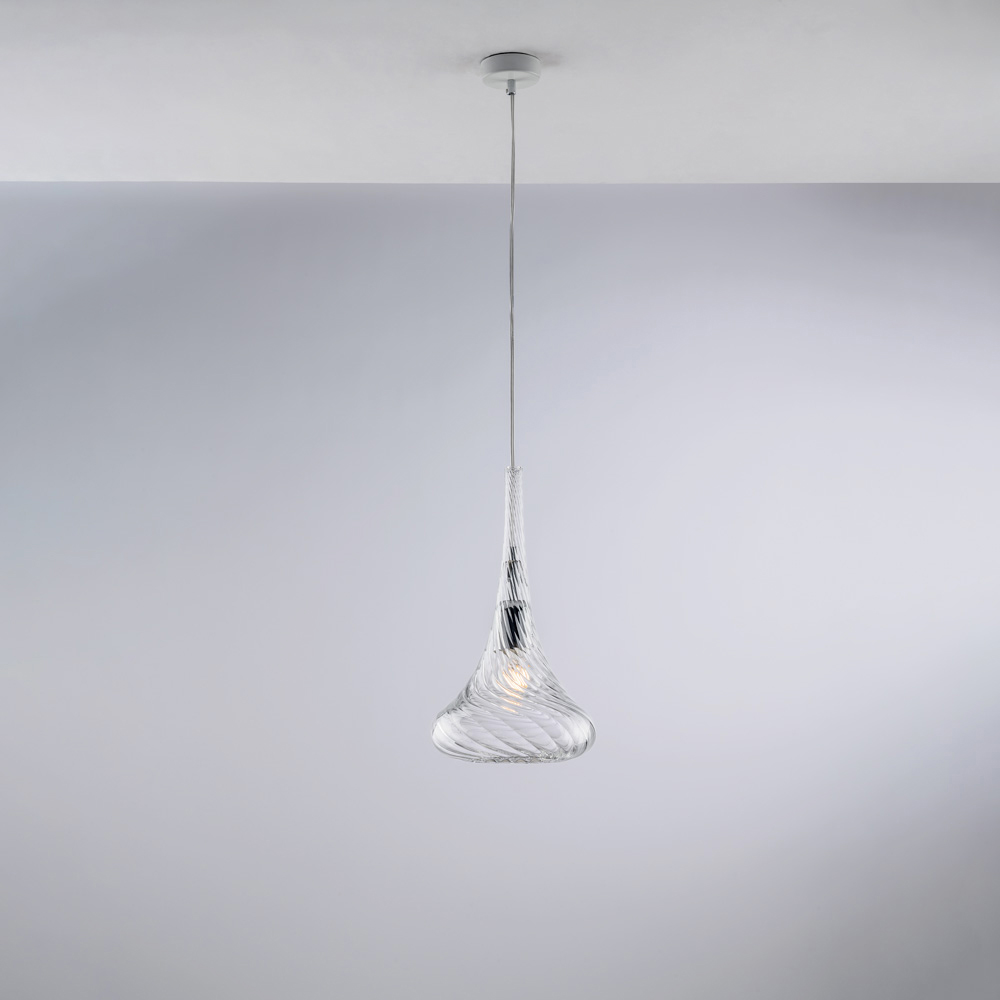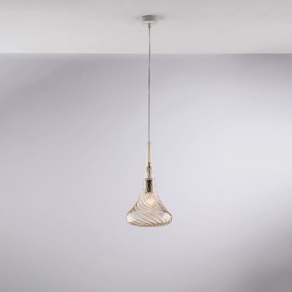 Disponibilă în finisaje Transparent , Chihlimbar sau Gri , această lampă suspendată se adaptează cu ușurință la o varietate de contexte de mobilier: luminoasă și minimalistă în versiunea transparentă, caldă și învăluitoare în chihlimbar, discretă și elegantă în gri. Este ideală pentru bucătării , insule , mese de sufragerie , holuri , colțuri de lectură și spații contract de design , fie că este utilizată individual, fie în compoziții.