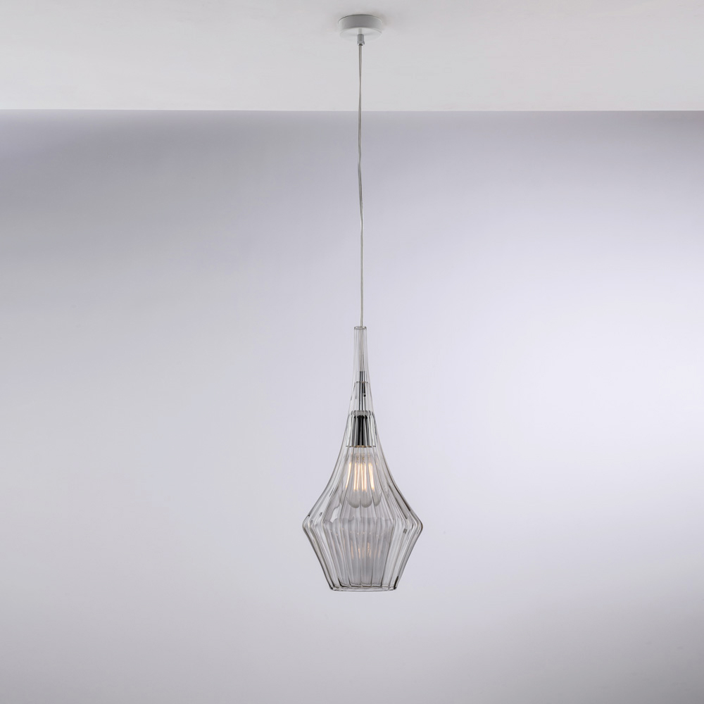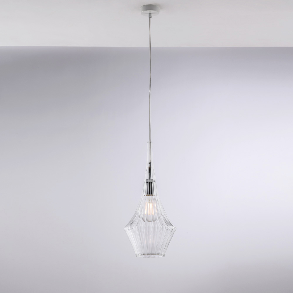 Disponibilă în finisaje Transparent , Chihlimbar sau Gri , această lampă suspendată vă permite să personalizați stilul spațiului dvs.: luminos și minimalist în versiunea transparentă, cald și învăluitor în chihlimbar, modern și elegant în gri. Perfectă pentru bucătării , insule , mese de sufragerie , holuri , colțuri de lectură și spații contract de design , atât individual, cât și în compoziții.