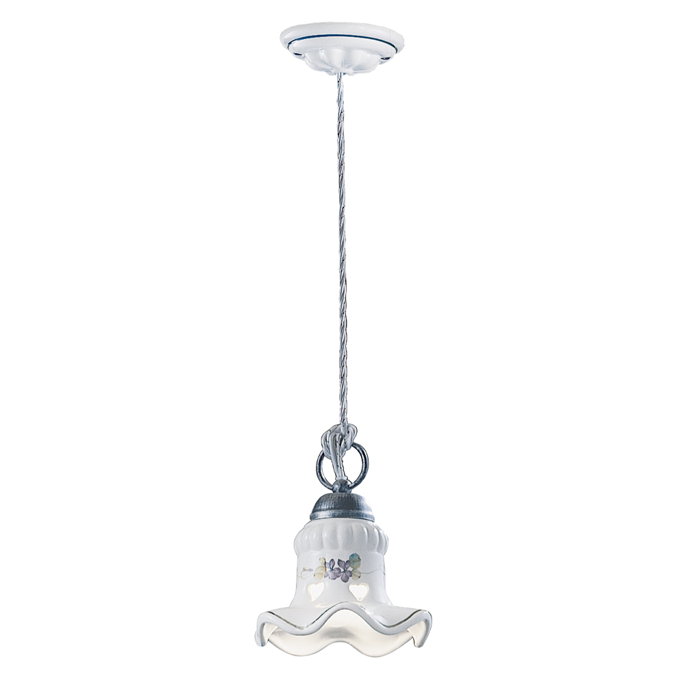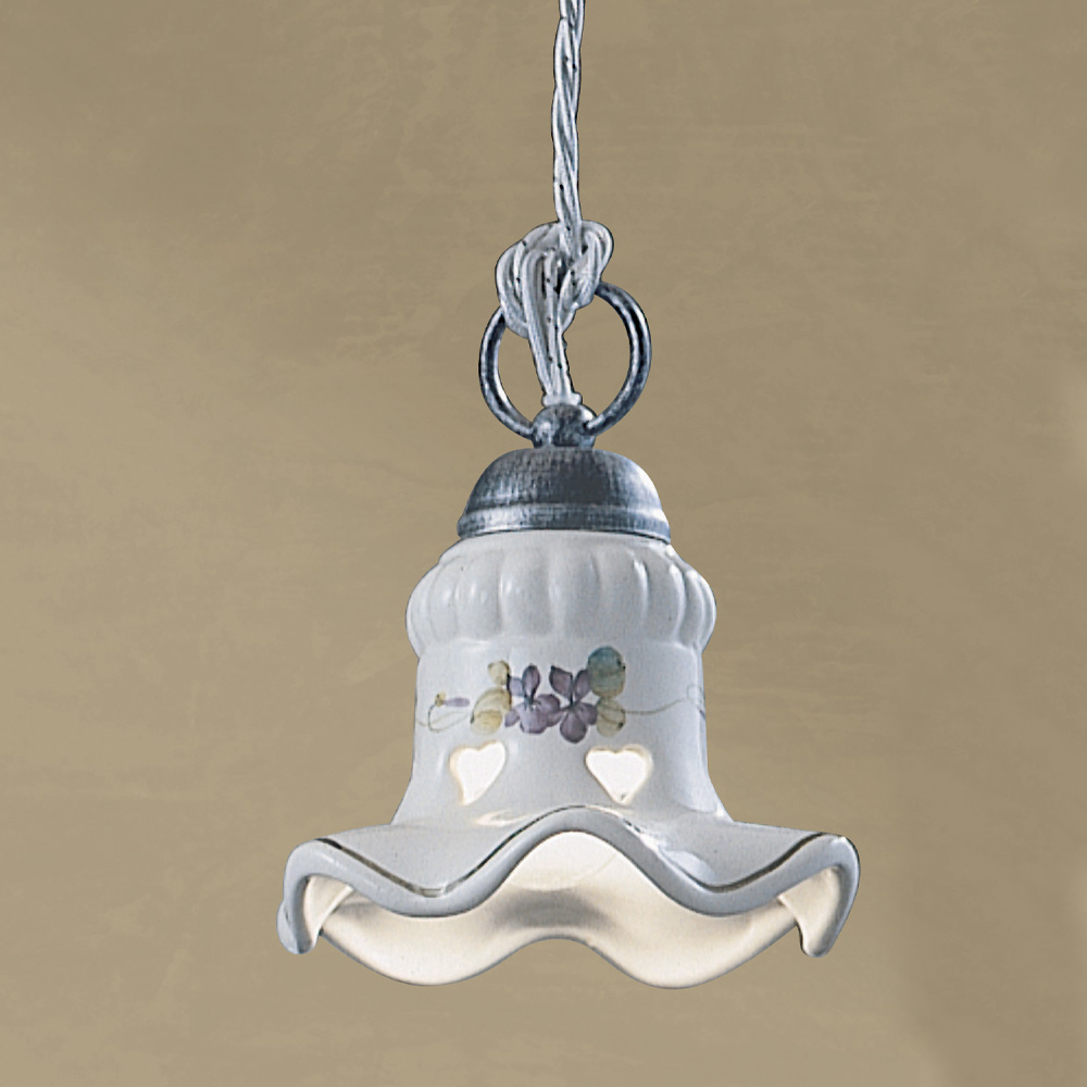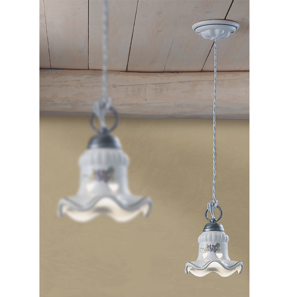 Lampă cu pandantiv din fier și ceramică decorată manual, fabricată în Italia de Ferroluce.