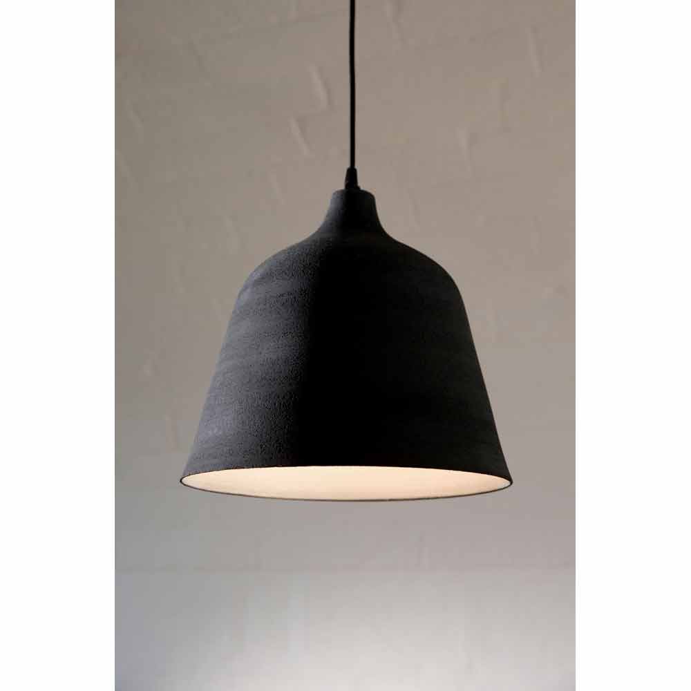 Lampa este fabricată din gresie antracit mat, un material compozițional de continuitate care diferă de ceramică pentru o rezistență mai mare la agenții atmosferici, la foc și la șocurile termice. Interior emailat alb.
