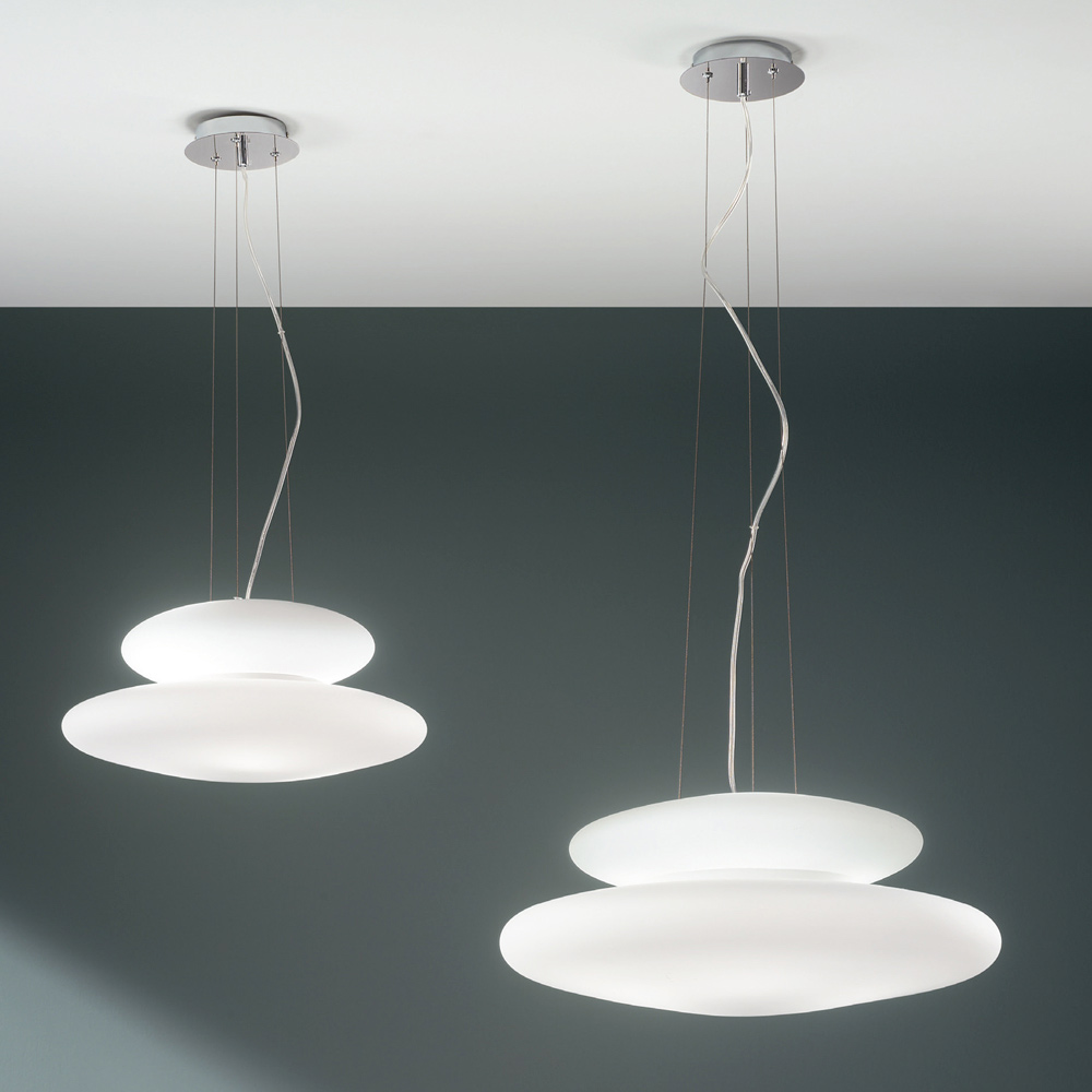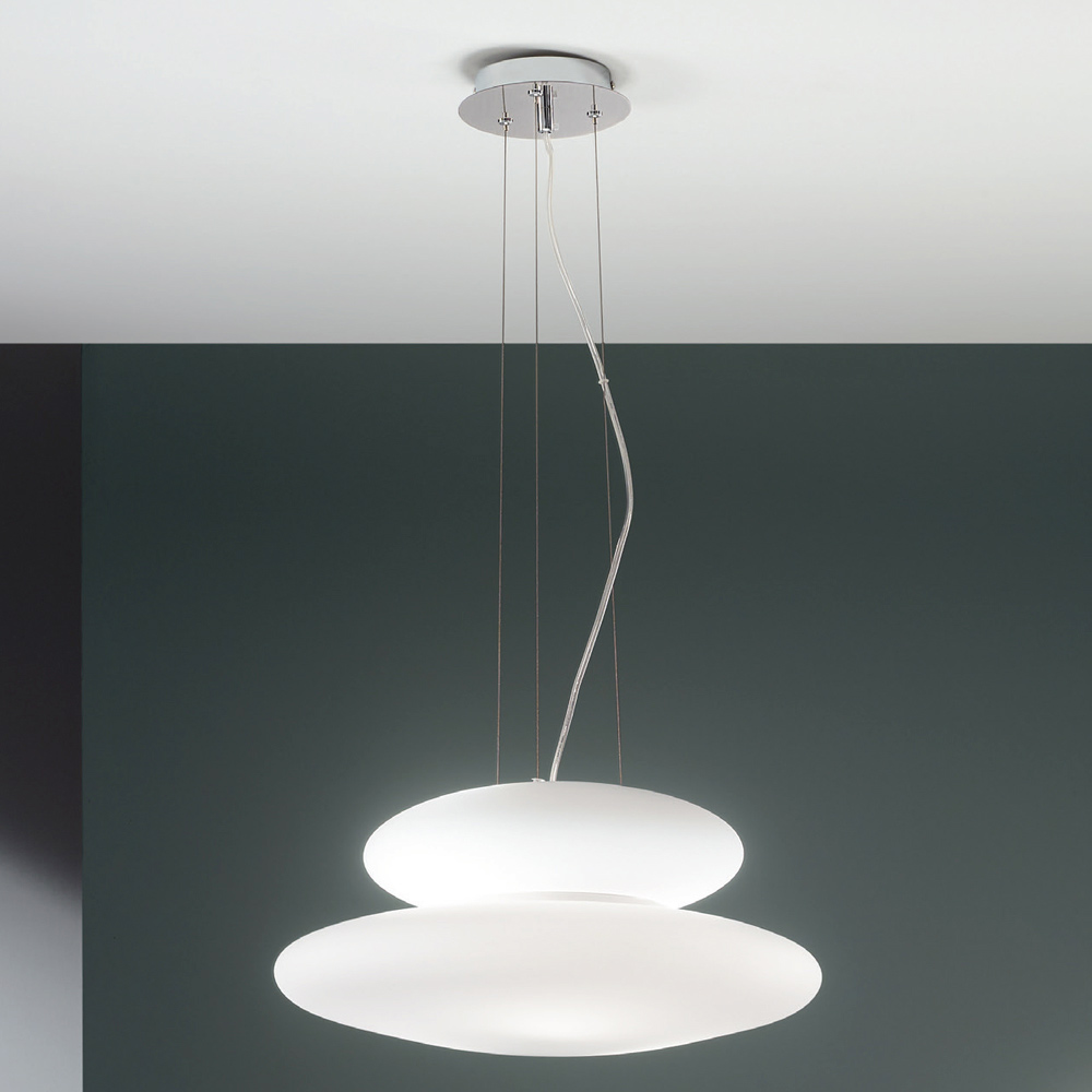 suflet delicat și elegant, care este o soluție perfectă pentru spațiile casnice cu o estetică contemporană. Format din doua discuri supravietuitoare din sticla suflata, reuseste sa cucereasca atentia devenind adevaratul protagonist al incaperii si in acelasi timp asigurand
