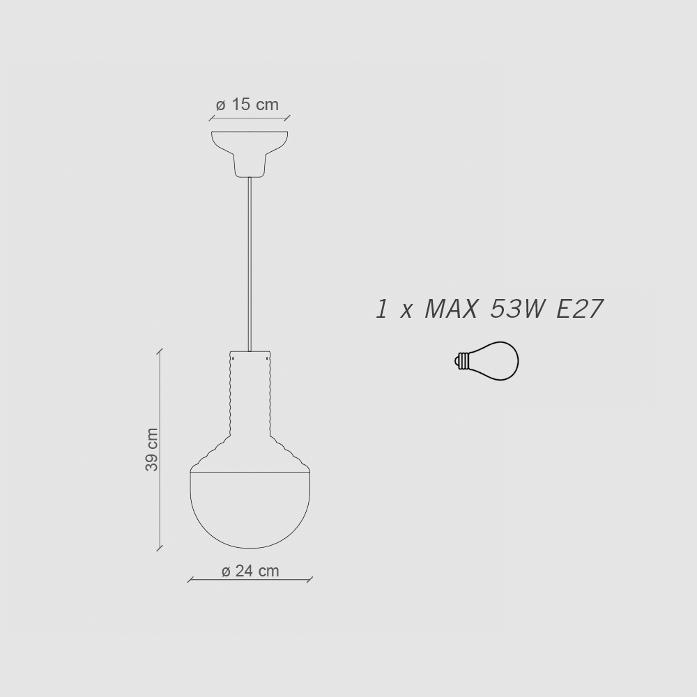 Designul îndrăzneț, dar rafinat, cu profilul său sinuos, este o declarație de stil care se potrivește cu grație în orice spațiu , făcându-l ideal pentru clientul care caută un element distinctiv pentru casa sau afacerea lor. Difuzorul din sticla emite o lumina moale si difuza, perfecta pentru a crea atmosfere primitoare si relaxante.