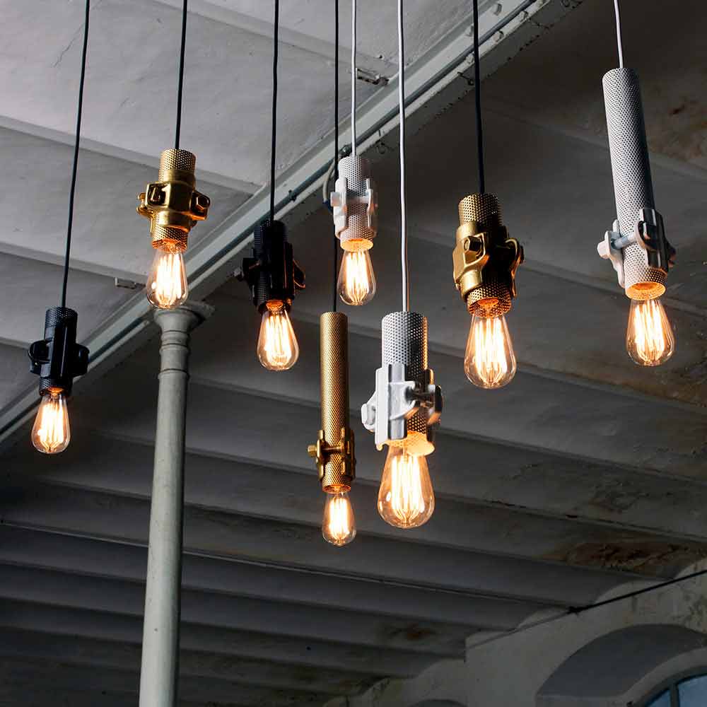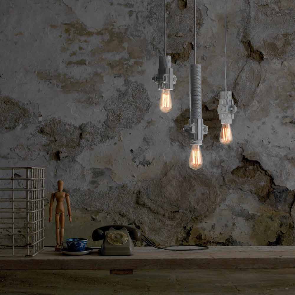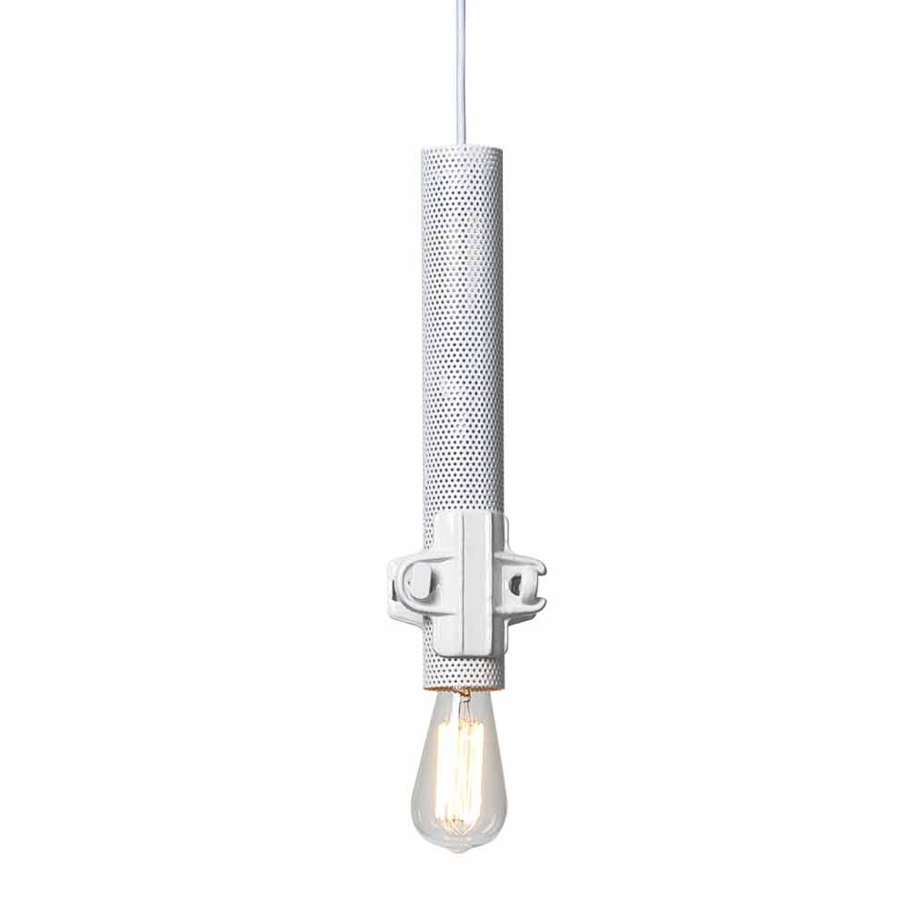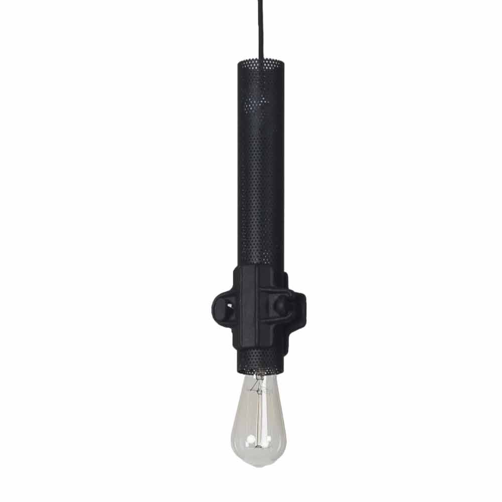 Această lampă de suspensie originală și singulară este compusă dintr-un tub și o îmbinare, două elemente care se pot transforma în vectori ușori pentru un design între tehnic și sofisticat, de stil industrial.