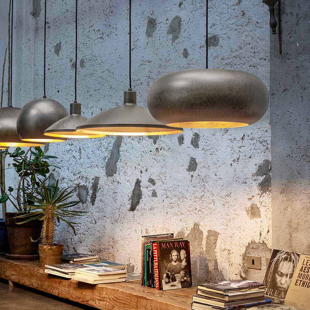Lampă de suspendare din oțel antic fabricat în Italia, Materia de Aldo Bernardi.