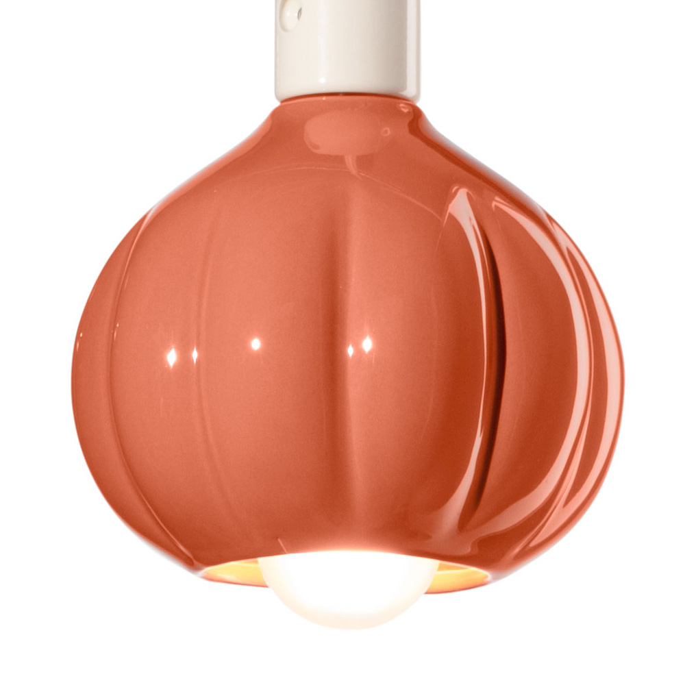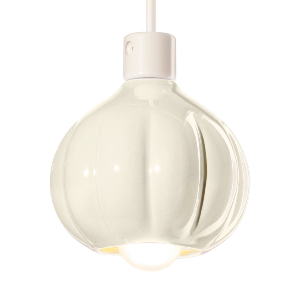 Aspectul neted și strălucitor al ceramicii este rezultatul unei lucrări atente, care nu numai că adaugă o notă de luciu vizual, dar garantează și durabilitatea în timp. Lampa atârnă grațios, suspendată de un șnur elegant care adaugă un element de design curat și modern, permițând lămpii să devină un punct focal într-o cameră fără a depăși alte elemente decorative.