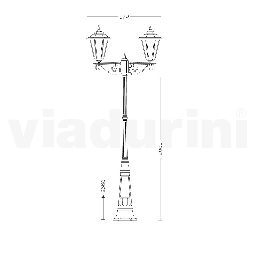 Lampa de gradina cu 2 lumini realizata integral in Italia cu structura