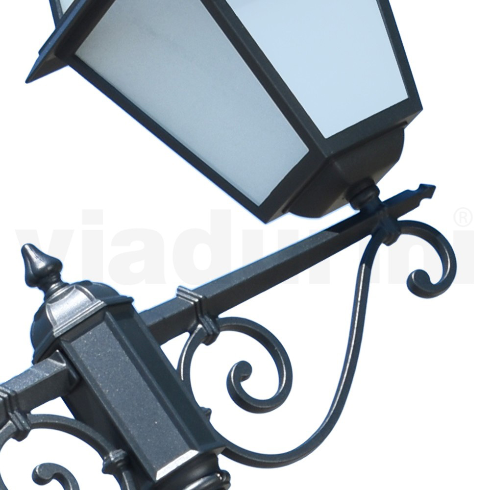 Lampă stradală din aluminiu în stil vintage cu 2 lumini cu difuzor din sticlă Fabricat în Italia.
