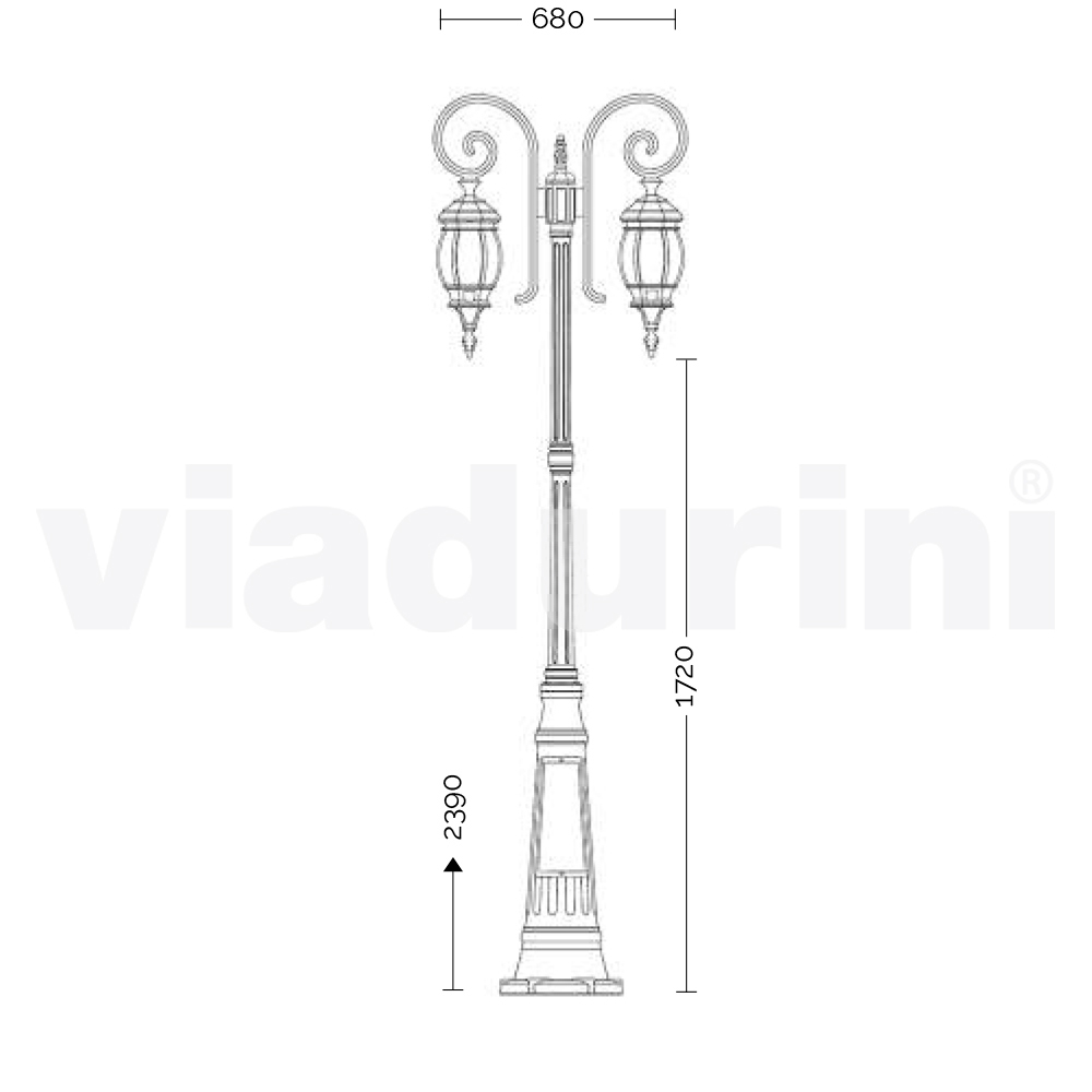 Anika este un lampadar de exterior cu doua lumini realizat manual in Italia cu material de inalta calitate: structura din aluminiu turnat sub presiune si difuzor din policarbonat transparent (garanta o difuzie optima si intotdeauna omogena a luminii).
