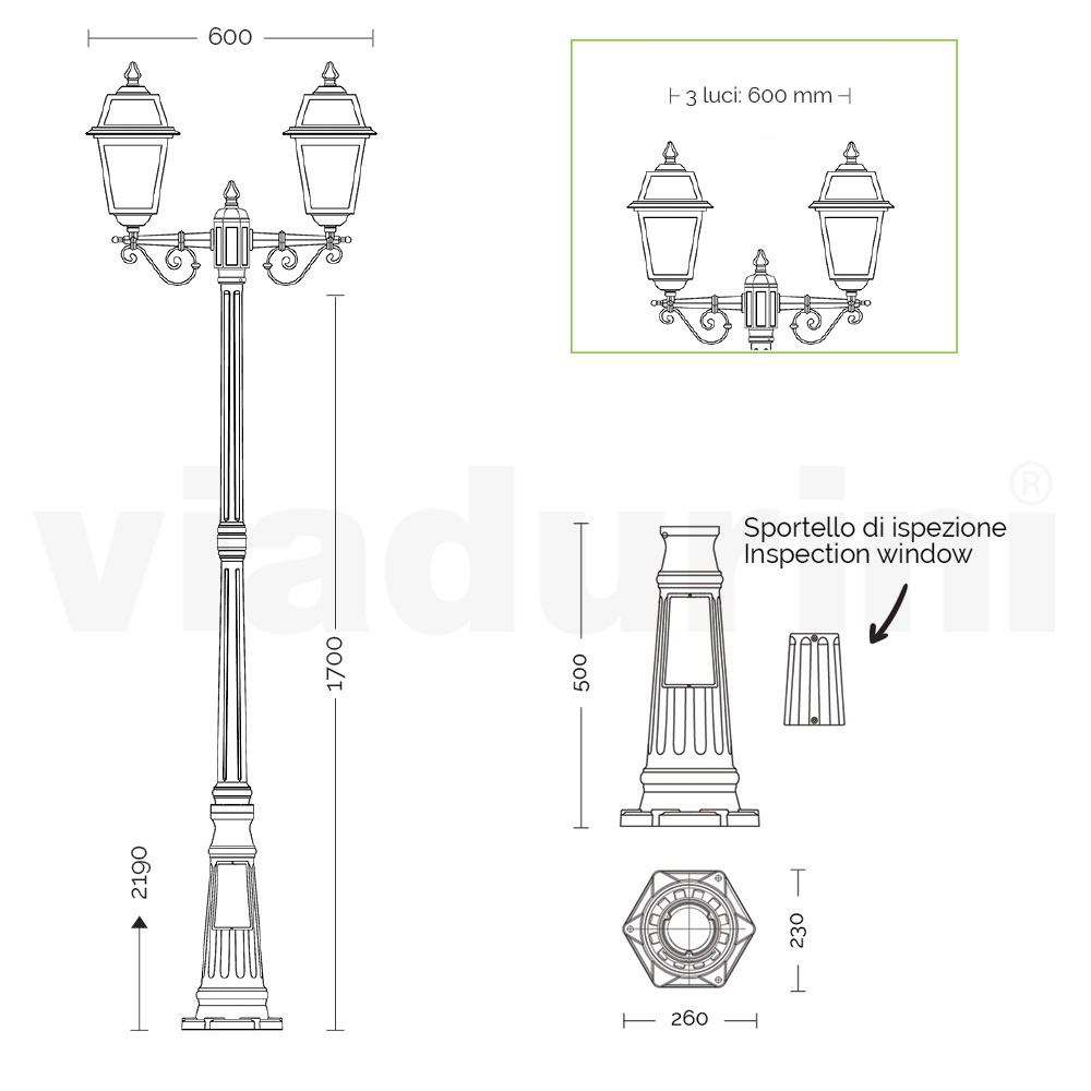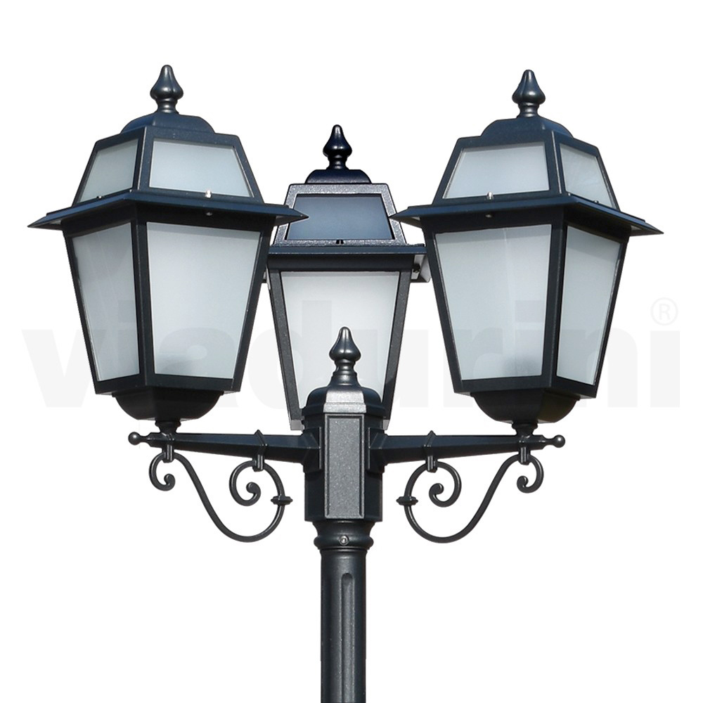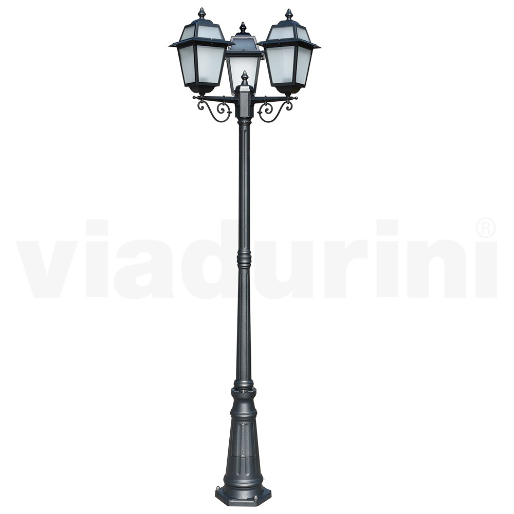 Această lampă stradală din aluminiu turnat cu finisaj antracit este o alegere elegantă pentru orice cadru exterior. Cu un design clasic și elegant, prezintă detalii lucrate care evocă o atmosferă de altădată. Cele 3 felinare, cu atenție la cele mai mici detalii, răspândesc o lumină caldă și blândă, ideală pentru a crea o potecă luminoasă în grădina dumneavoastră sau pentru a delimita clasic o zonă de relaxare exterioară. Soliditatea și frumusețea se reunesc în această lampă stradală, concepută să reziste în timp și să reziste agenților atmosferici. Eleganta si functionala , va fi semnatura luminoasa a spatiului dumneavoastra exterior.