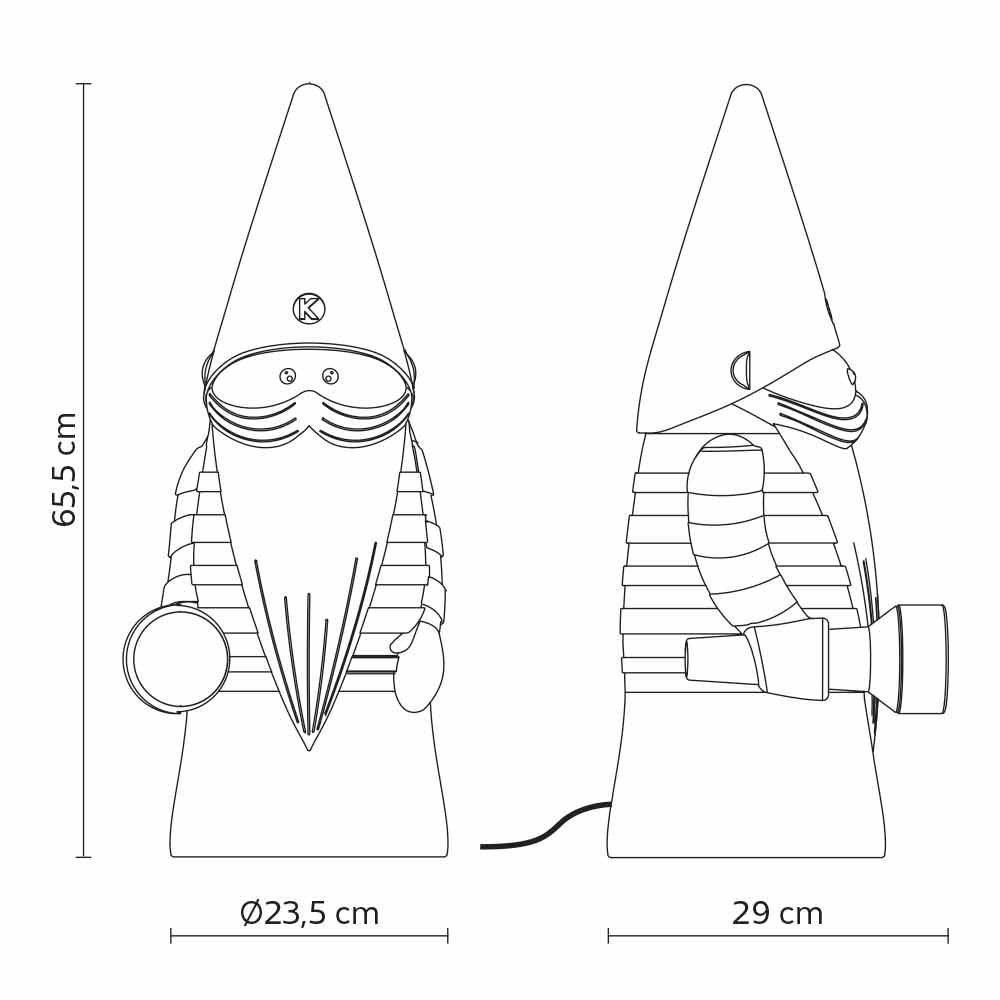 Această lampă de podea originală și unică în aer liber dorește să se distreze cu forma sa plină de spirit și amuzantă care îl înfățișează pe cel de-al optulea pitic al Albă-ca-Zăpada. Este un complement ironic în gardo pentru a caracteriza mediile interne și externe cu gust și stil pentru maxim de contemporaneitate și o notă de unicitate.