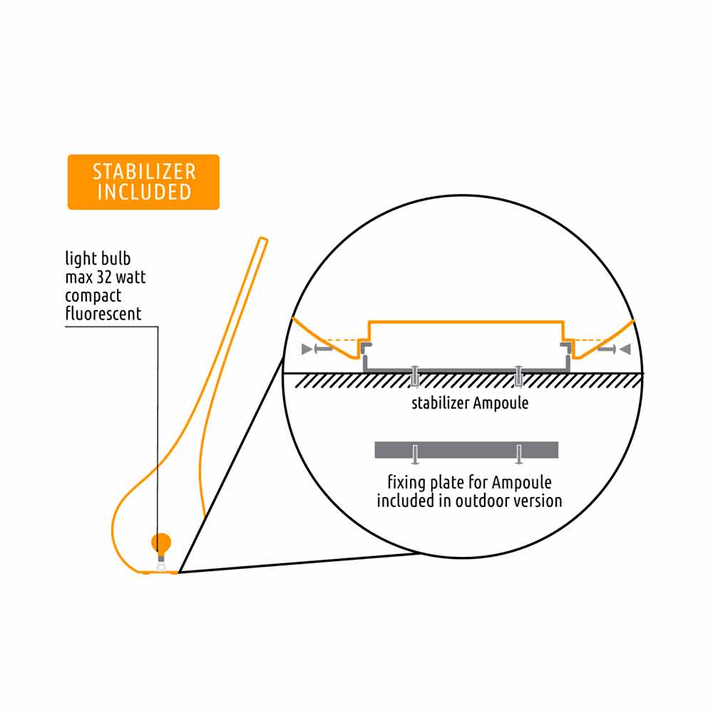 Designul său maiestuos nu este un gigant cu picioare de lut: Ampoule XL este, de fapt, solid ancorat la sol datorită suportului de fixare și a balastului, care ajută la asigurarea unei stabilități suplimentare.
