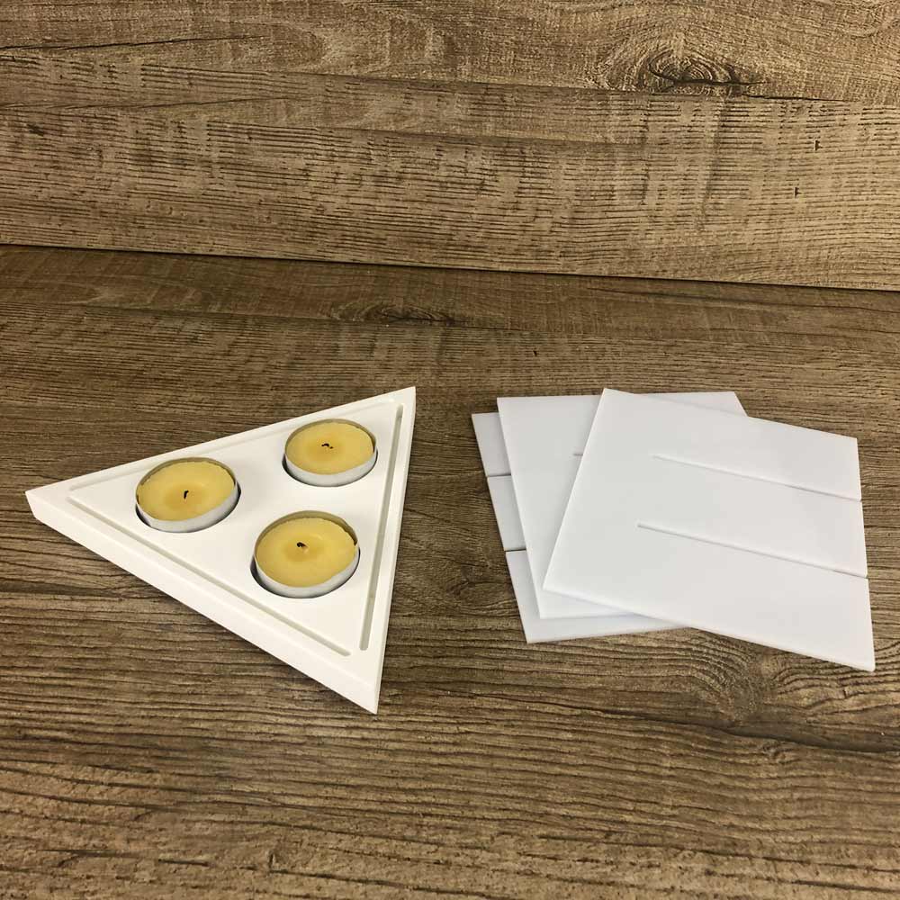 Este un felinar de bază triunghiular pentru trei lumini cu trei ecrane „opale” detașabile și antivent pentru un joc elegant și esențial de lumini.