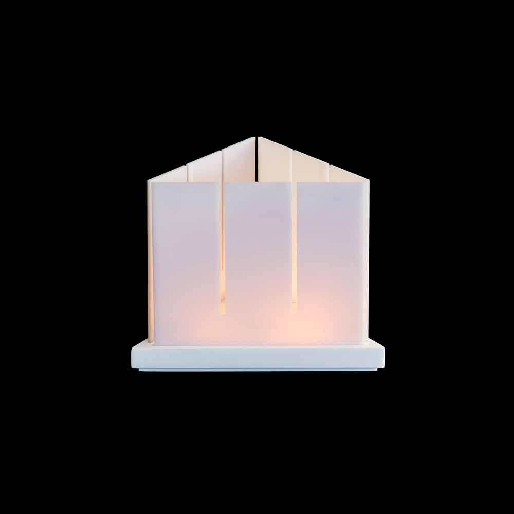 Lanternă de design în formă triunghiulară coriană albă fabricată în Italia.
