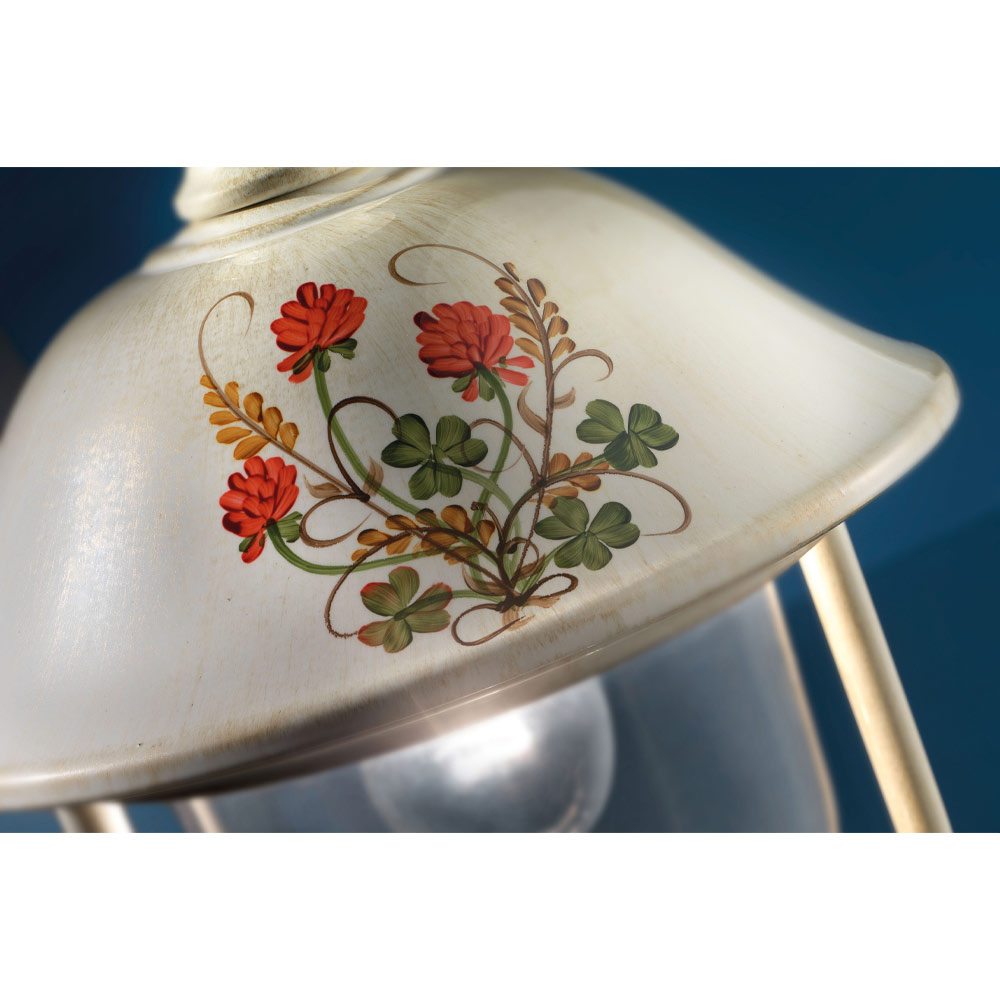 Această lampă suspendată de exterior este realizată în întregime din aluminiu decorat cu flori pictate manual pentru un stil clasic și armonios între formă și culori.