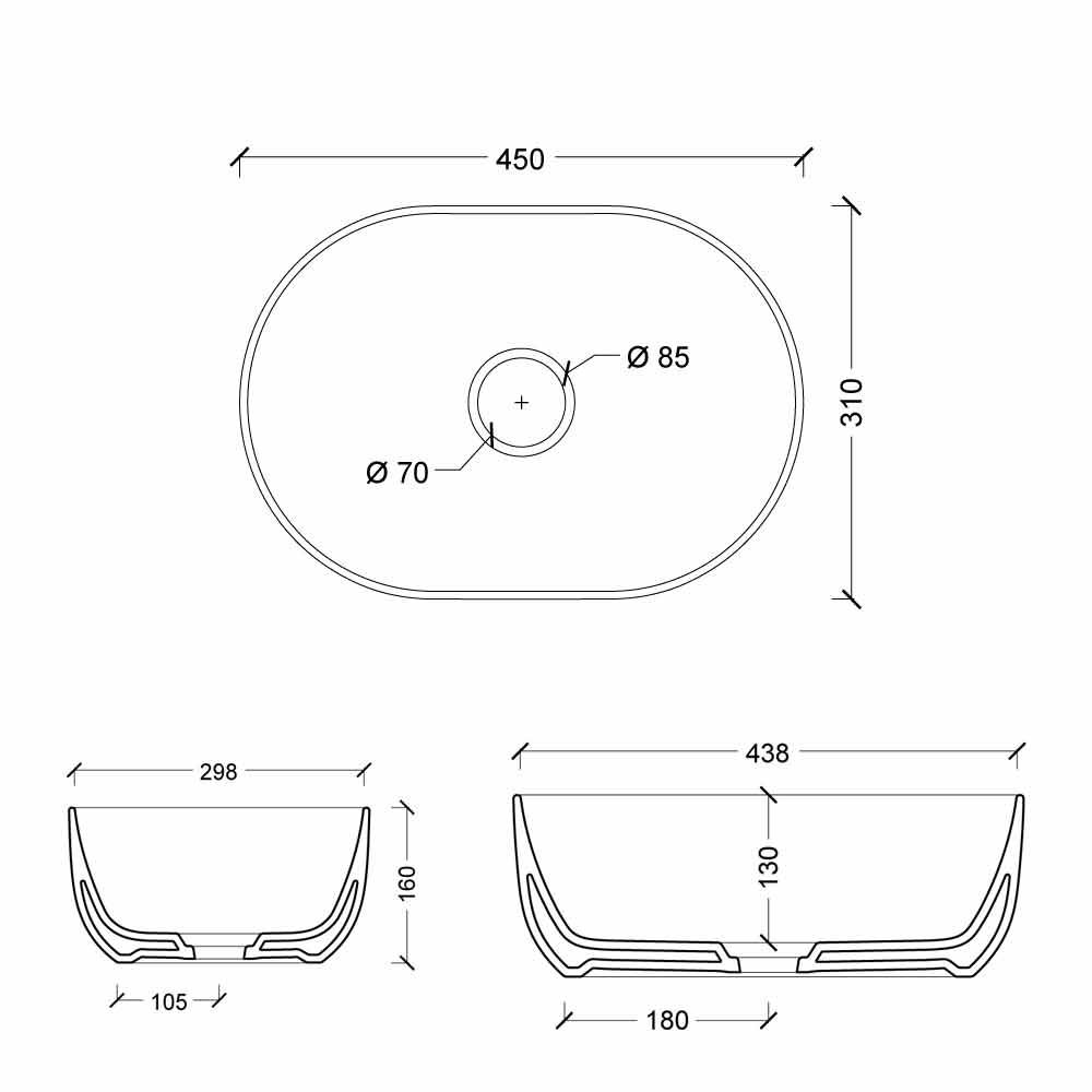 NB: Evacuare gratuită din ceramică inclusă, fără robinet.