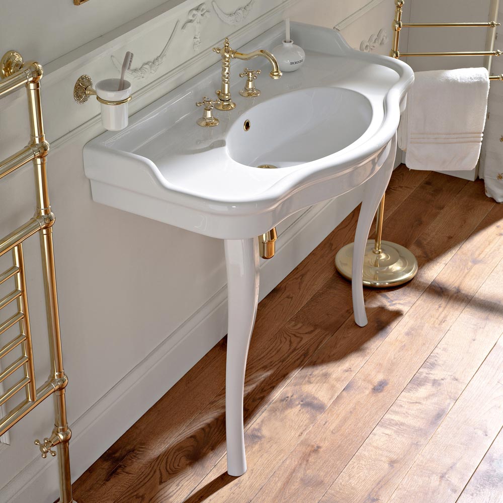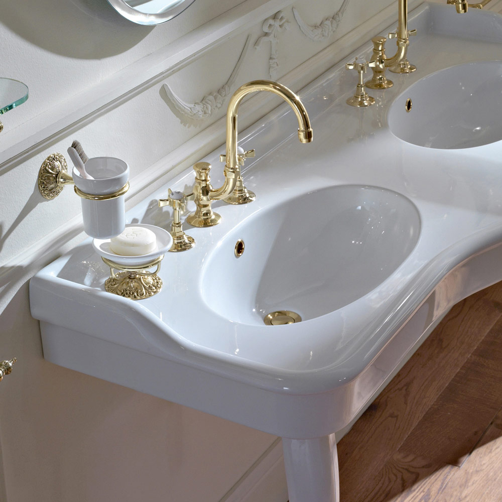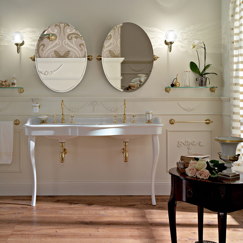 Mesă consolă de baie vintage cu bazin dublu din ceramică albă Paulina, made in Italy.