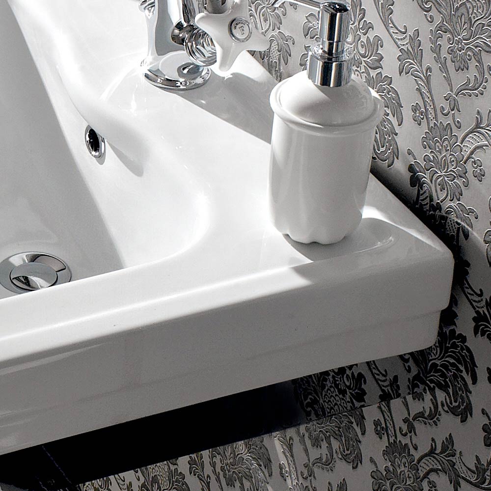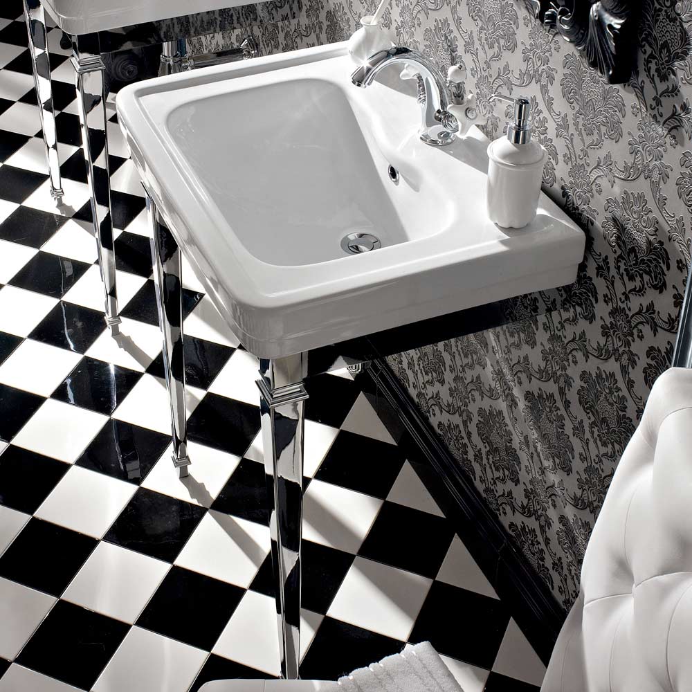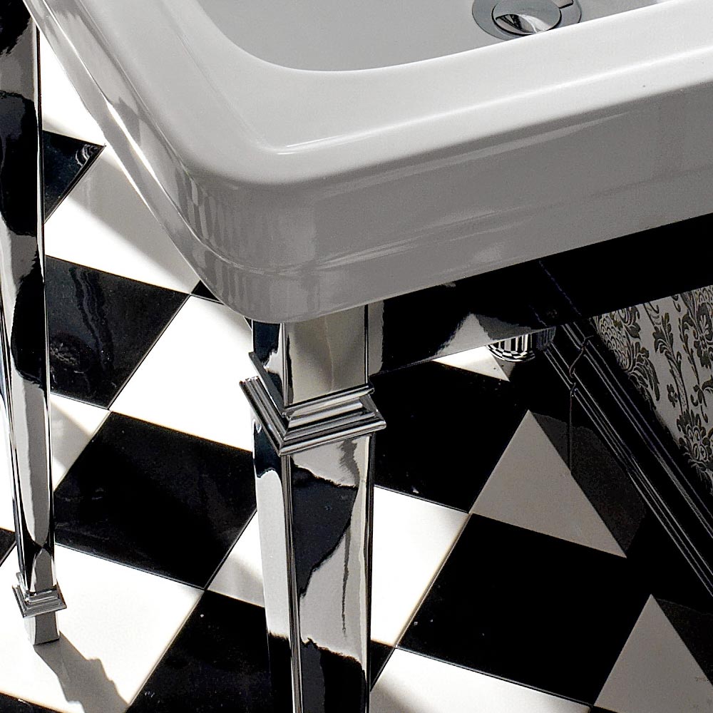 Stilul acestei chiuvete de consolă poate fi definit ca fiind neoclasic: designul și liniile retro sunt combinate cu materiale cu un caracter mai modern, cum ar fi metalul.