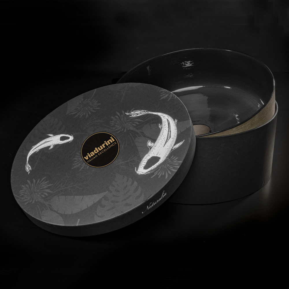 Lavoar pe blat cu forma rotunda din argila refractara realizata manual in Italia si intoarsa manual cu al treilea foc de gatit. Estetica sa se caracterizeaza prin combinatia perfecta dintre exteriorul natural cerat si hidroizolat cu un stil mai rustic si interiorul lucios si vitrificat in finisaj negru, culoarea prin excelenta a elegantei si rafinamentului legata de atmosfere misterioase. Fiecare element al lavoarului este realizat manual pentru a da viață unei soluții de amenajare exclusiviste, de mare valoare și de o calitate fără egal.