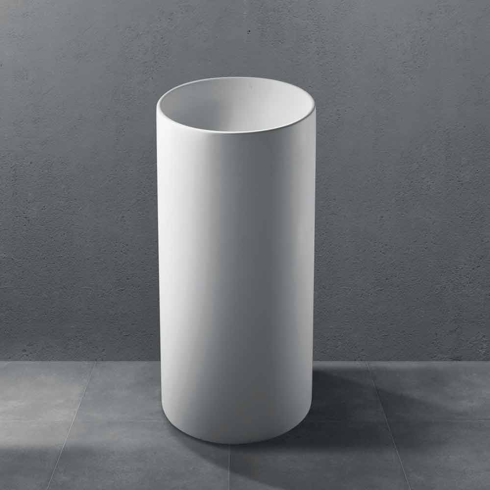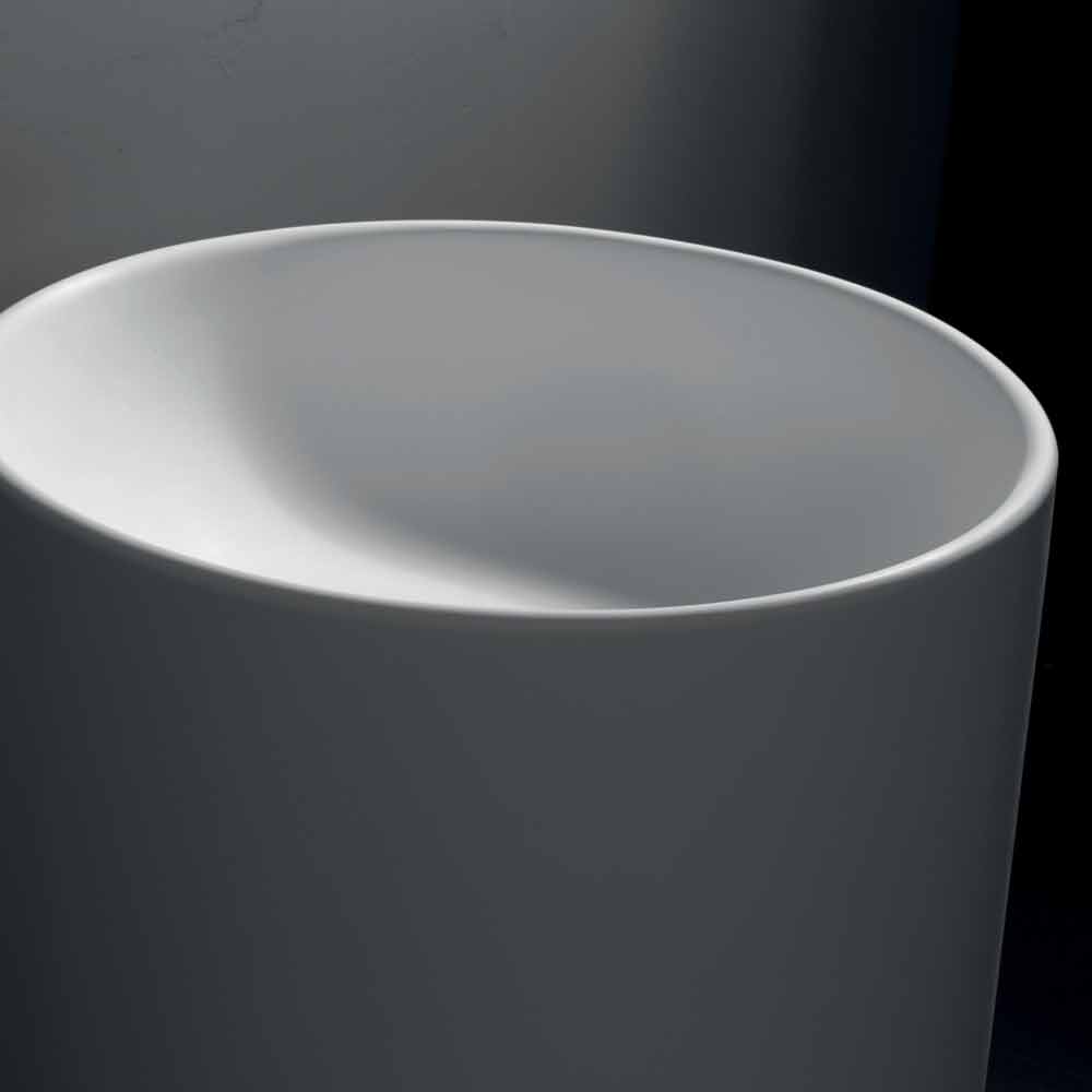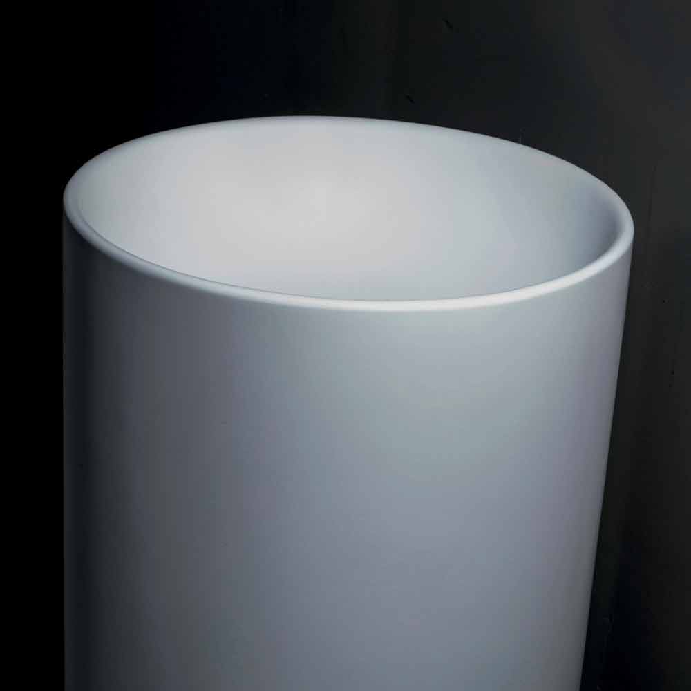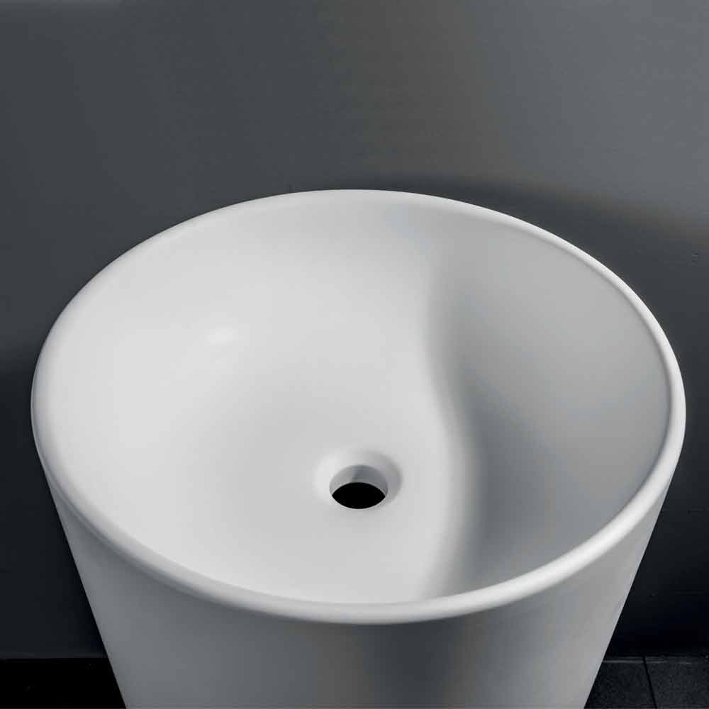 Chiuvetă de baie de sine stătătoare din rășină albă.