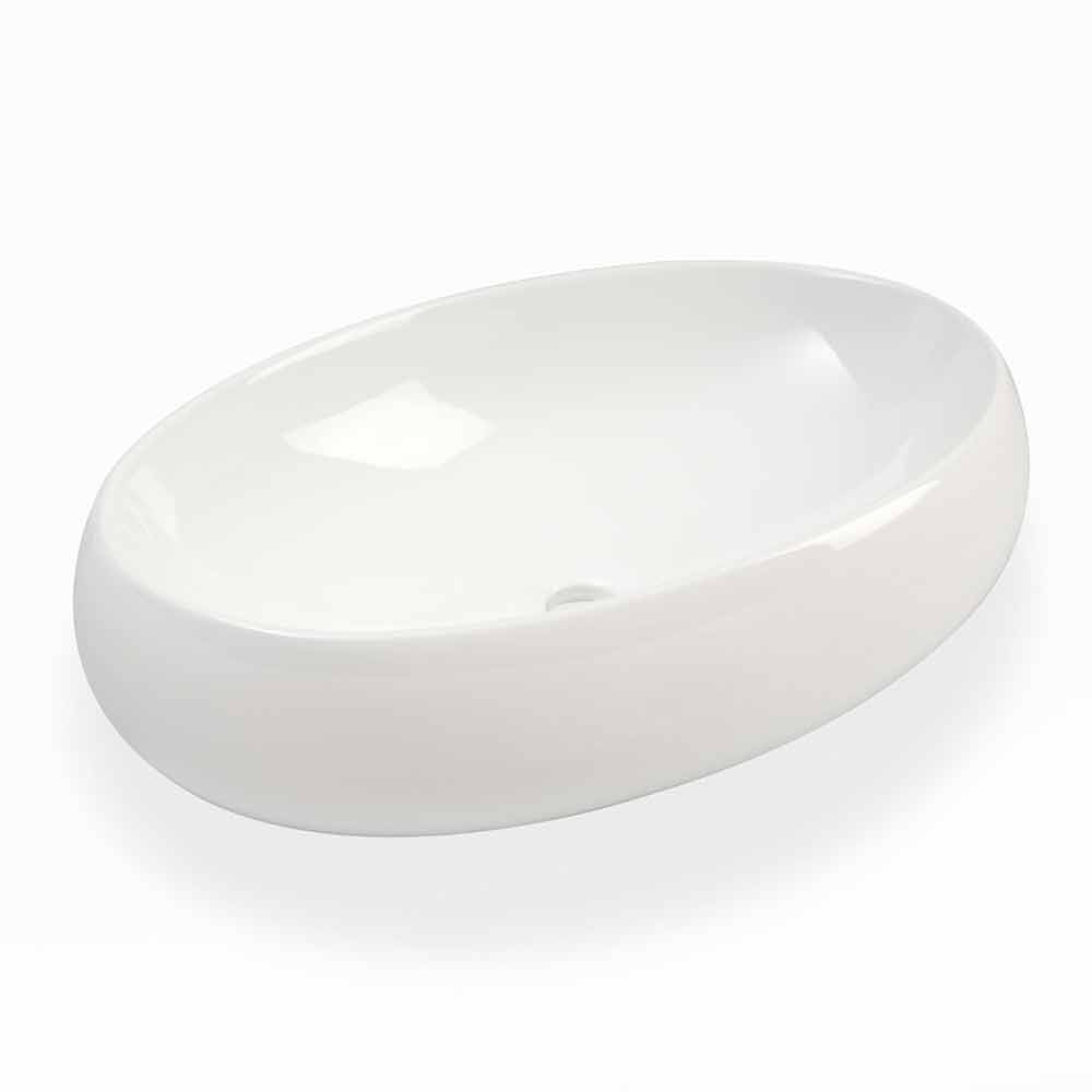 Lavoar de blat oval în stil modern, realizat manual în Italia, din ceramică albă lucioasă.