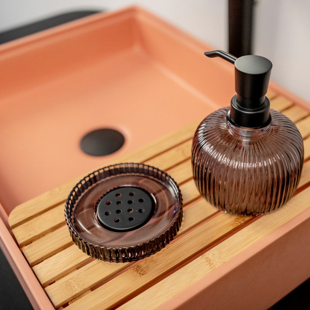 Chiuveta rectangulară din terrazzo de blat are un finisaj vibrant portocaliu Mali , făcând o adevărată declarație de stil în lumea designului interior. Nu numai că este o declarație de stil etnohic și pop , dar oferă și caracter practic cu cada sa spațioasă . Blatul detașabil din bambus este o bijuterie ingenioasă, perfectă pentru a ține la îndemână accesoriile și produsele cosmetice. Această piesă este ideală pentru a adăuga o notă de culoare și personalitate oricărei băi contemporane, asortându-se perfect cu cele mai populare tapetări de perete. Un obiect care nu trece neobservat, gata să devină punctul de sprijin vizual al spațiului tău de baie.