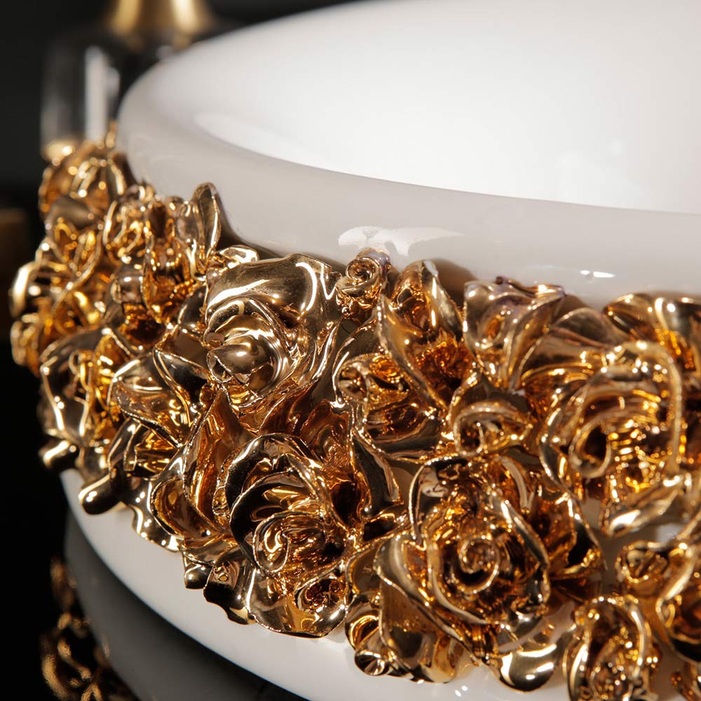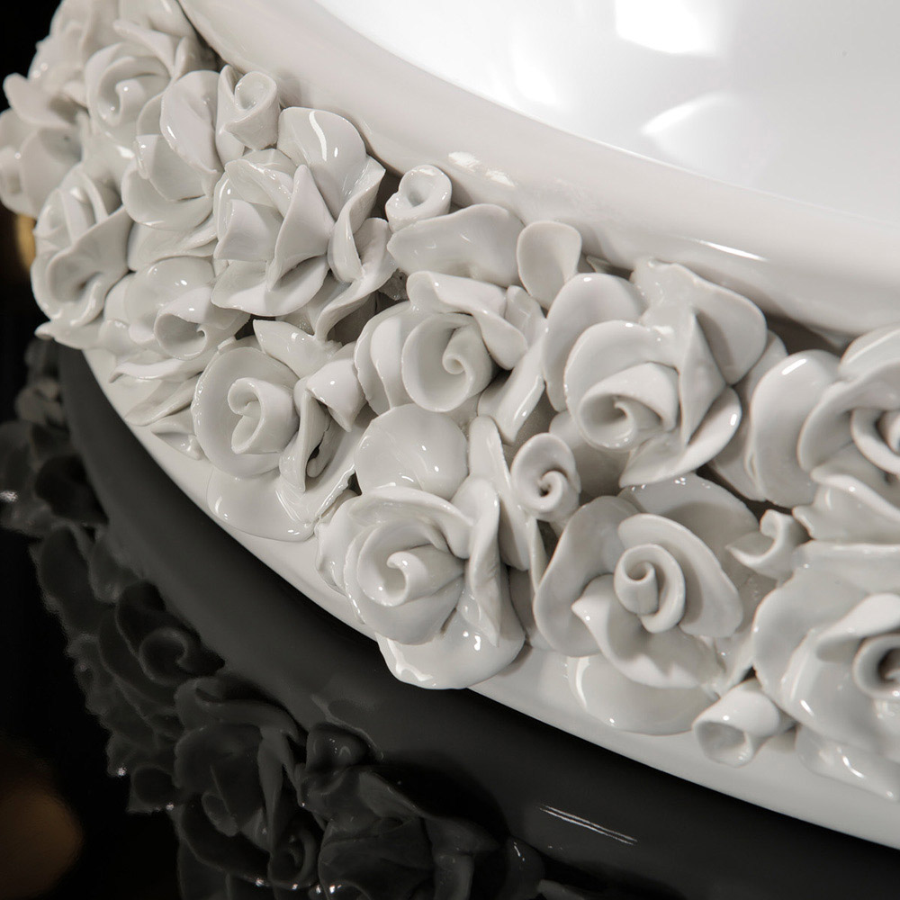 Chiuveta de baie din portelan cu petale de portelan lucrate manual aplicate ulterior , in intregime