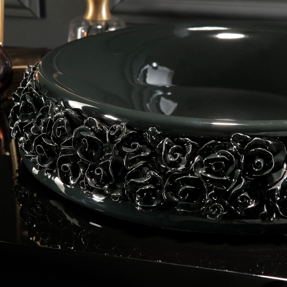 - chiuvetă neagră lucioasă cu petale negre