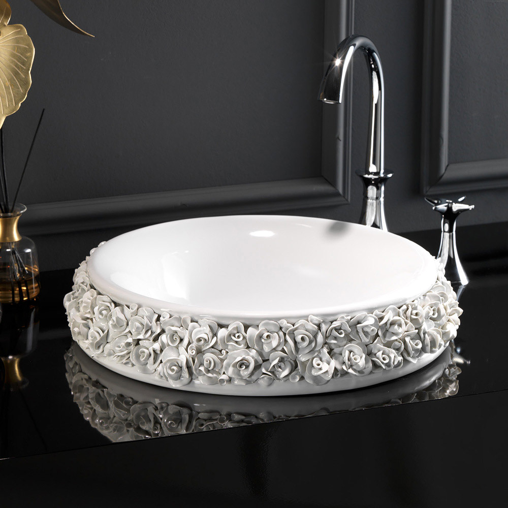 Lavoar din porțelan turnat manual cu petale Fabricat în Italia
