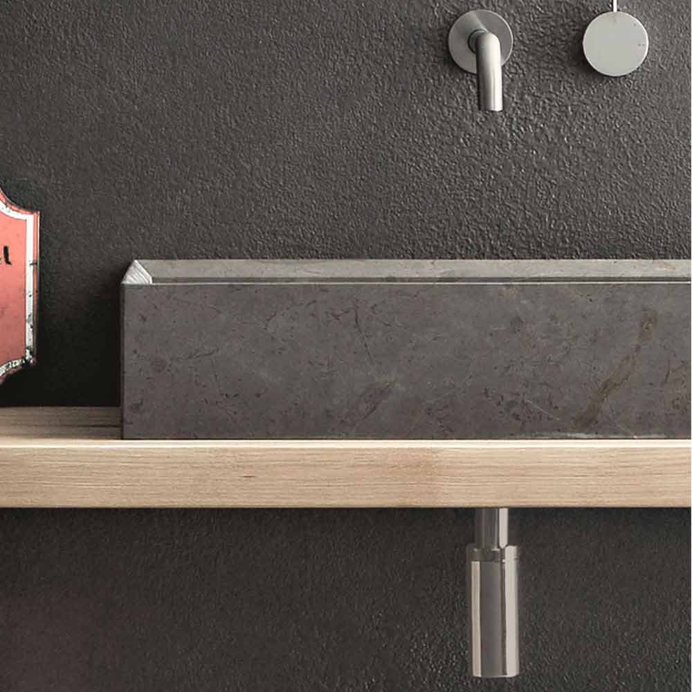 Chiuvetă din blat din piatră cu finisaj din piatră gri. Fără gaură de robinet, fără gaură de revărsare și evacuare exclusă