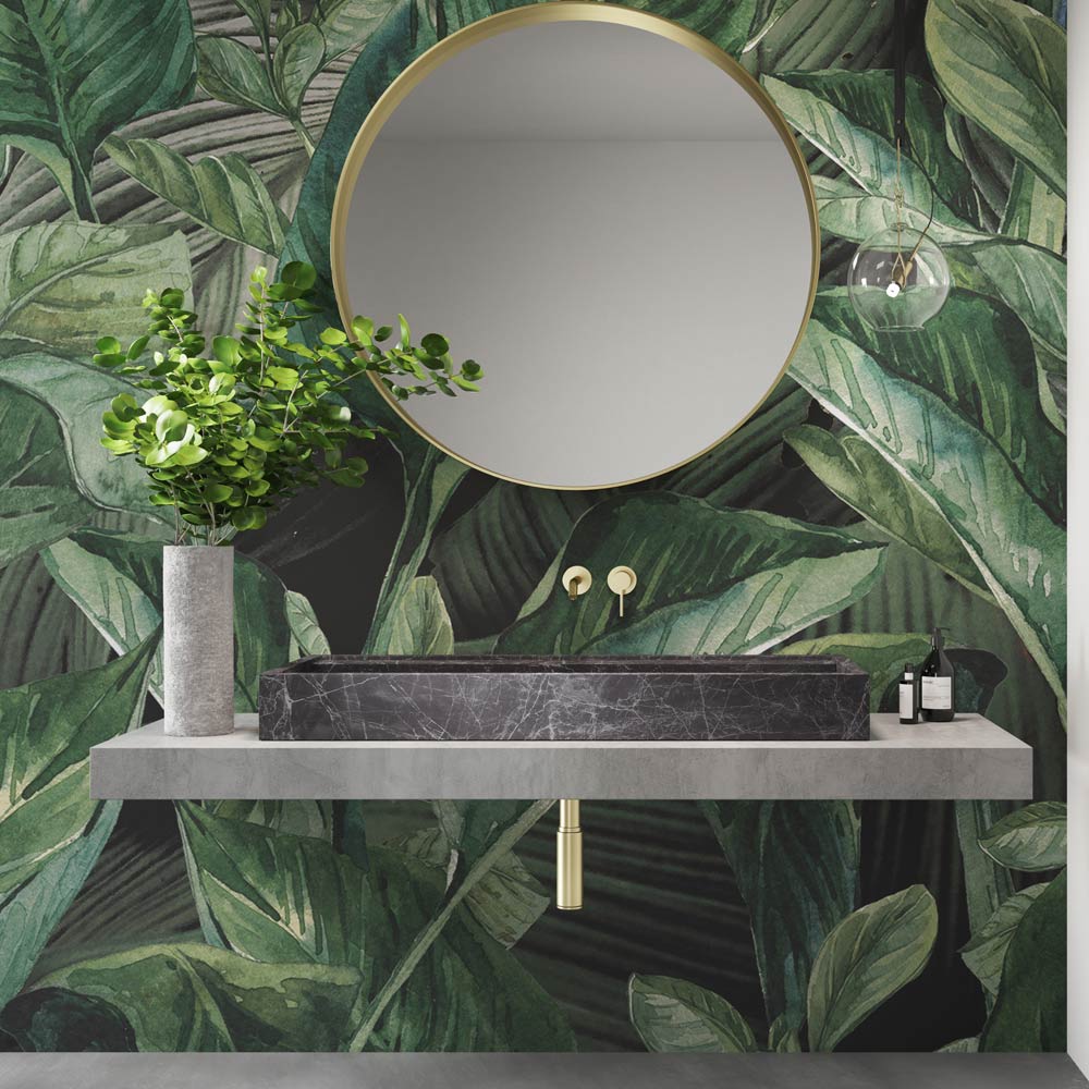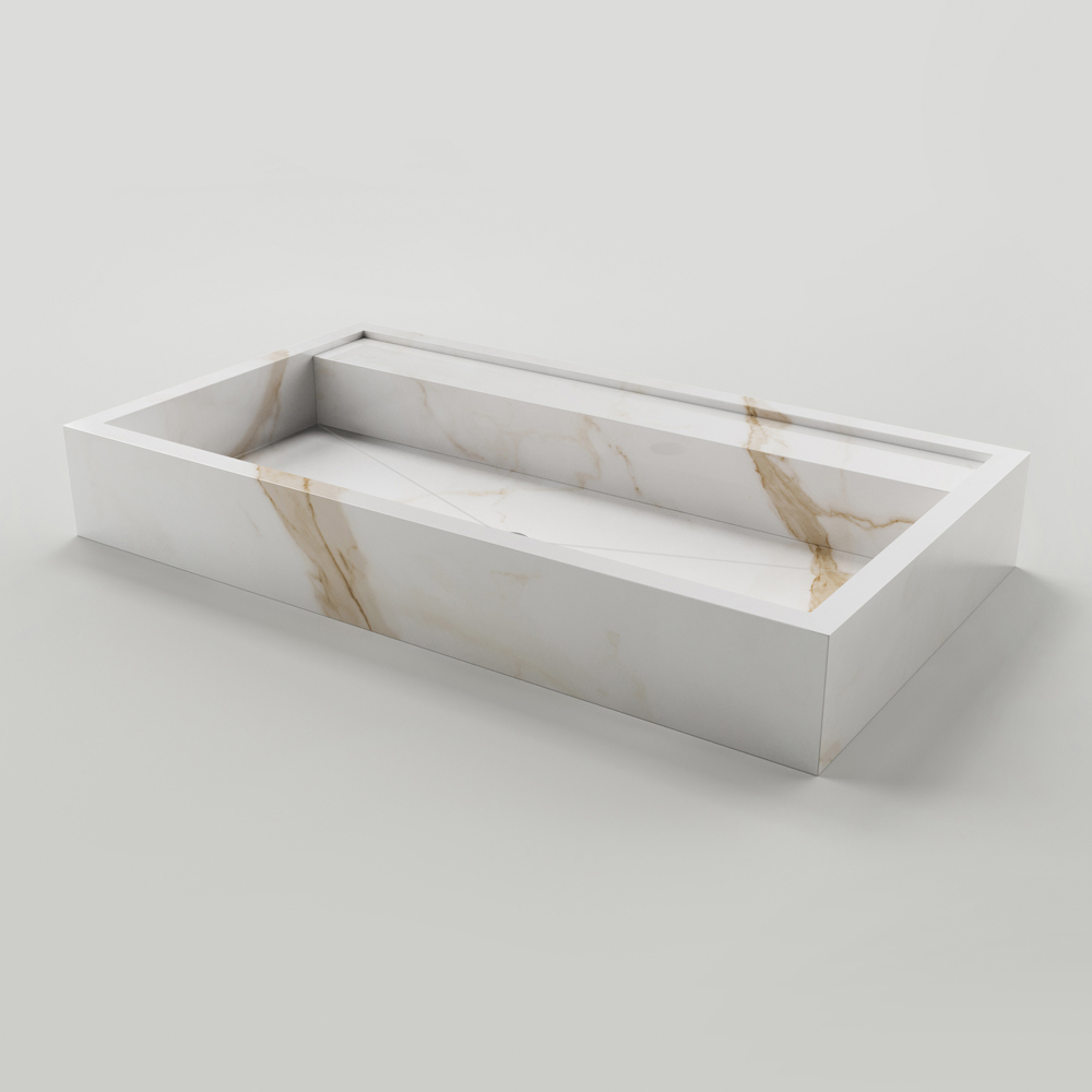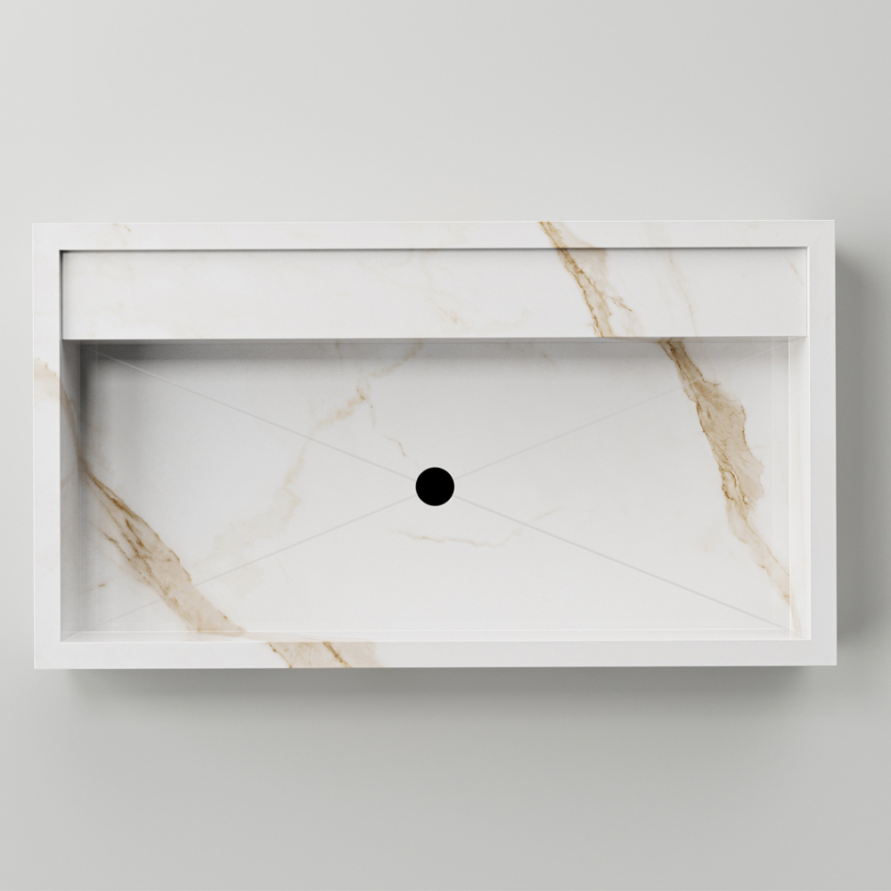 Lavoar pe blat din gresie portelanata cu efect de marmura Made in Italy.