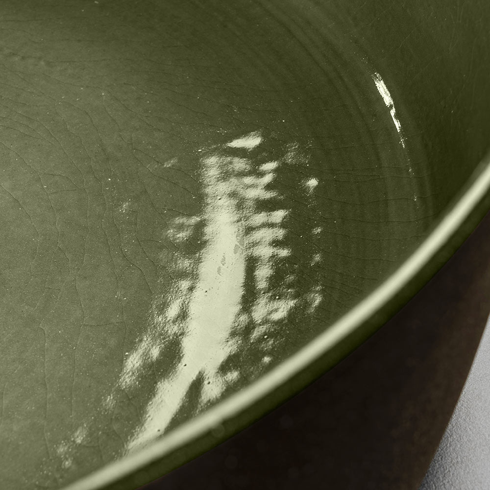Lavoar pe blat din lut refractar verde, turnat manual Made in Italy.