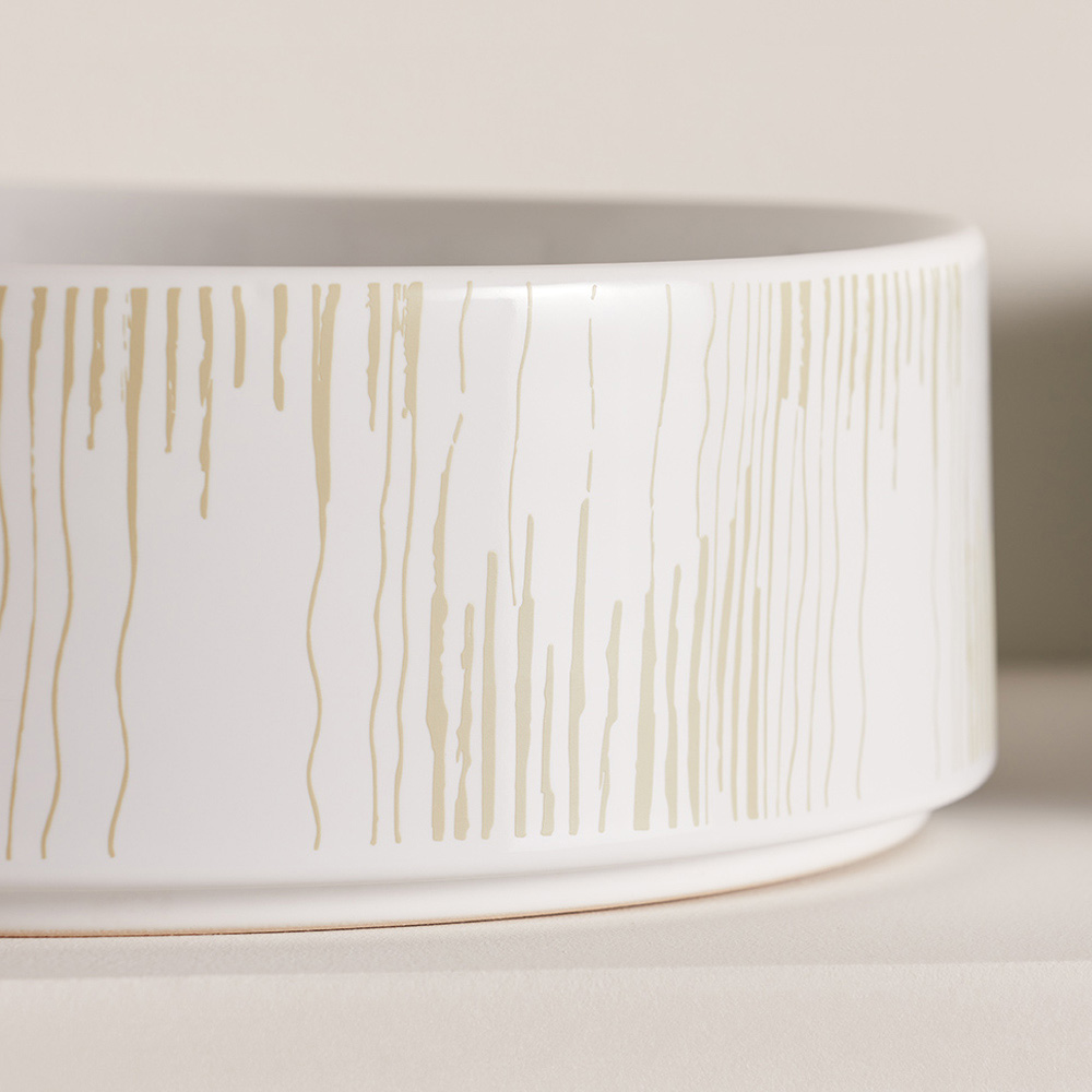 - interior alb lucios, decor exterior negru în relief negativ pe email alb mat (bambus alb)