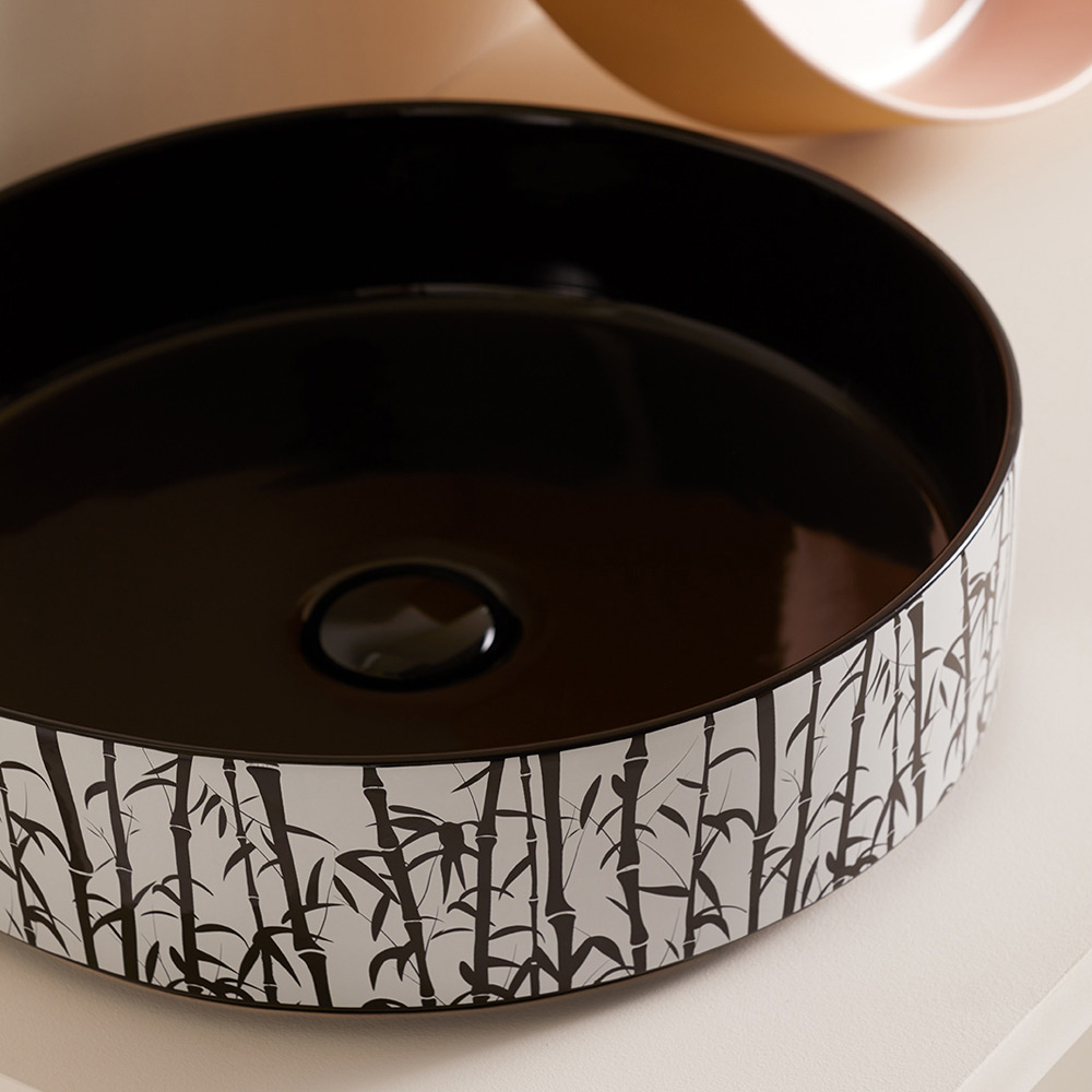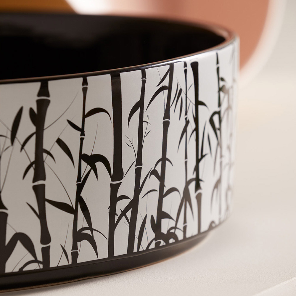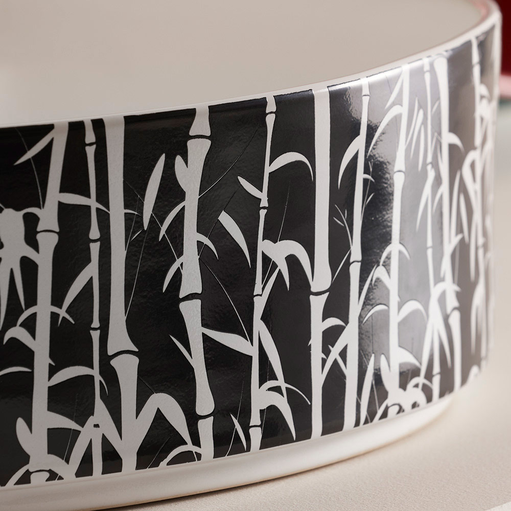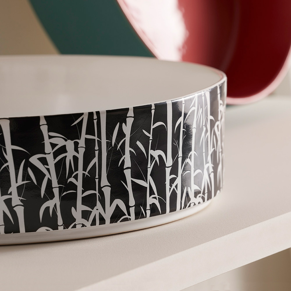 - interior negru lucios, decor exterior alb în relief negativ pe email negru mat (bambus negru)