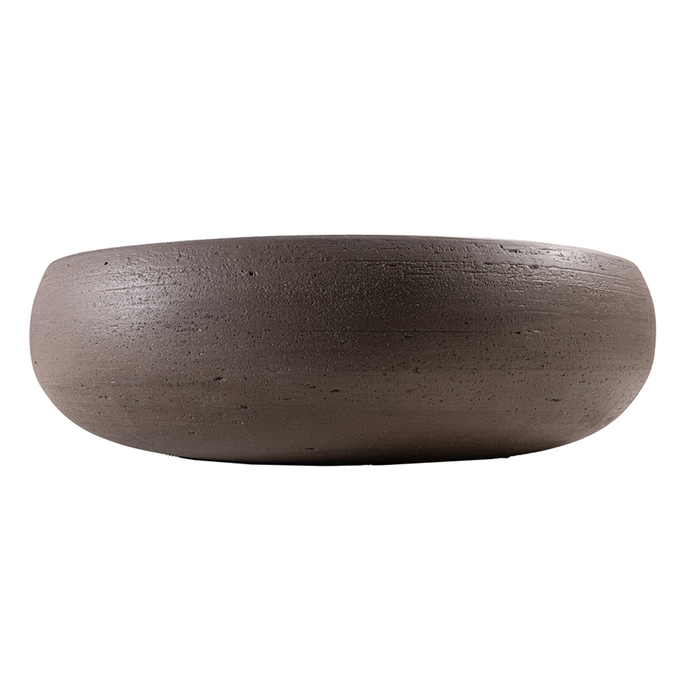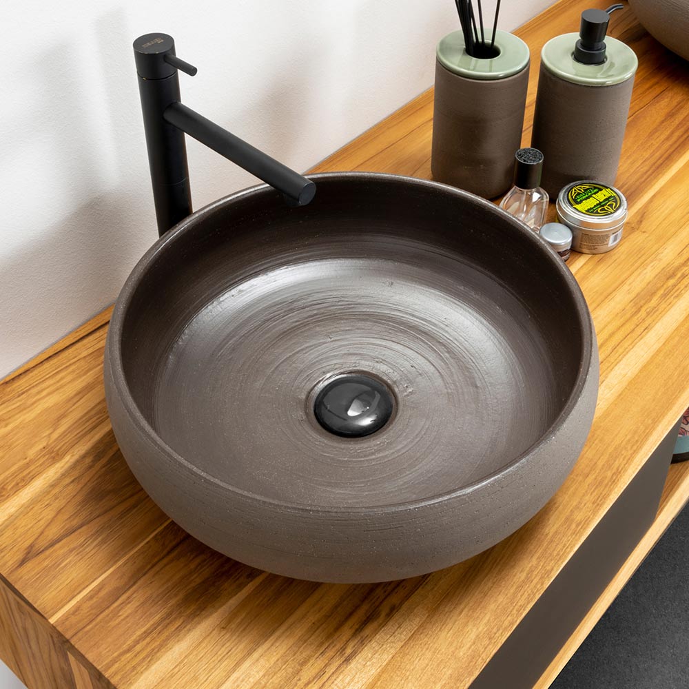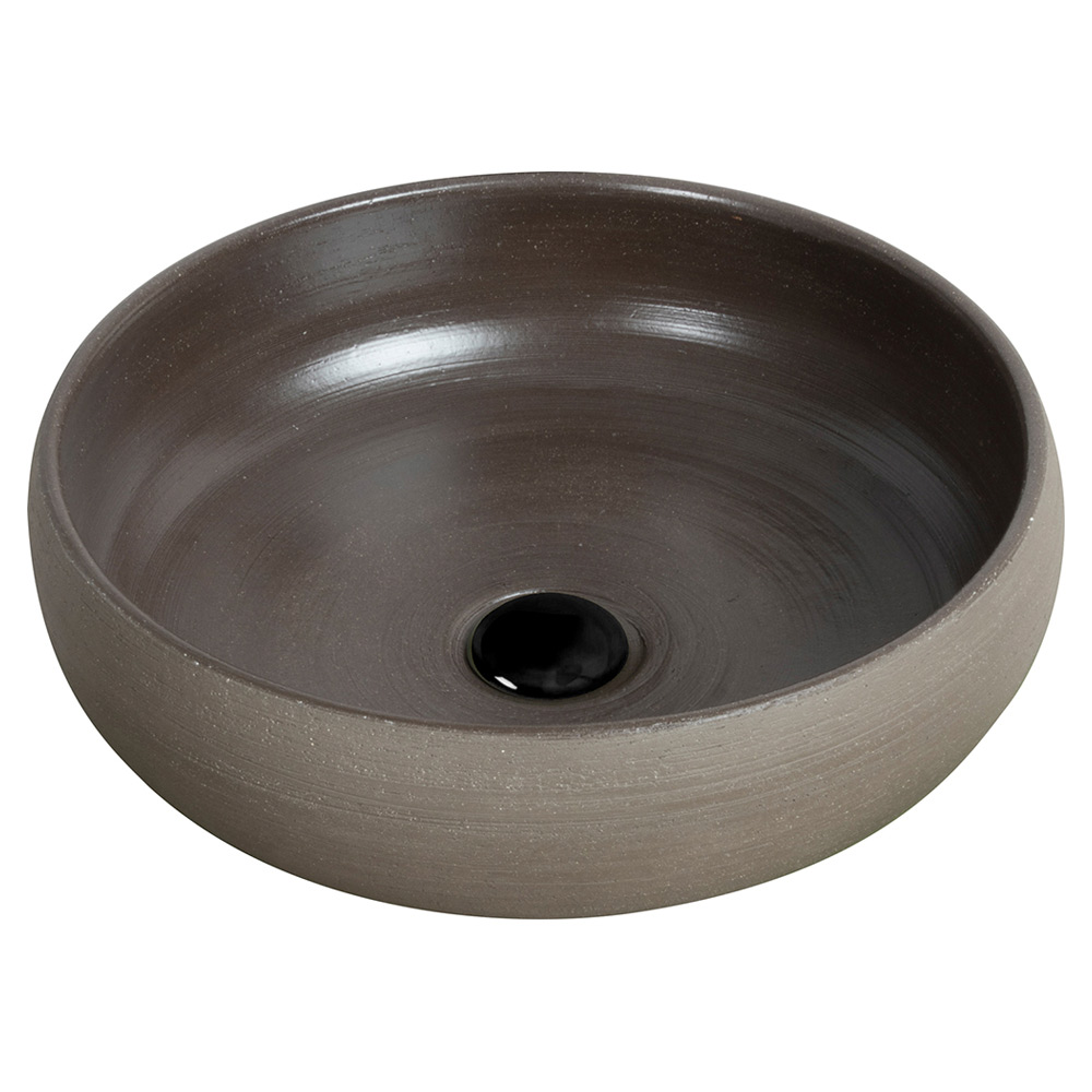 Lavoar pe blat cu forma rotunda din argila refractara si pamant inchis in intregime realizata in Italia, intoarsa manual si ars in Third Fire. O piesă de mobilier captivantă la atingere și sinuoasă, în forme moi și dimensiuni generoase, care combină stilul și funcționalitatea făcându-l perfect pentru a fi poziționat în orice zonă de baie. Finisajul rustic și elegant scoate în evidență caracterul luminos al acestei chiuvete făcând-o protagonistă și luminând atmosfera.