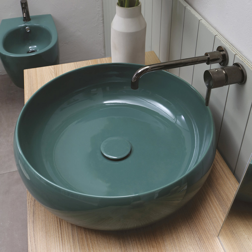 Lavoar rotund de blat fabricat în Italia printr-o măiestrie din ceramică lucioasă. O piesă de mobilier originală și elegantă care prezintă un design marcat de linii moi și armonioase care conferă produsului toată personalitatea sa contemporană și aroma sa modernă. Ideal pentru băile cu mobilier rafinat și esențial, acest lavoar aduce cu sine un puternic impact scenografic datorită culorilor minunate și neobișnuite propuse care transformă estetica sa simplă într-o adevărată capodoperă.