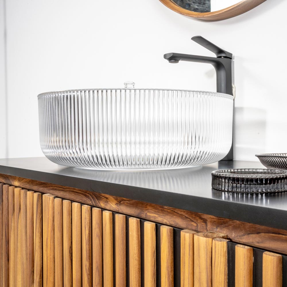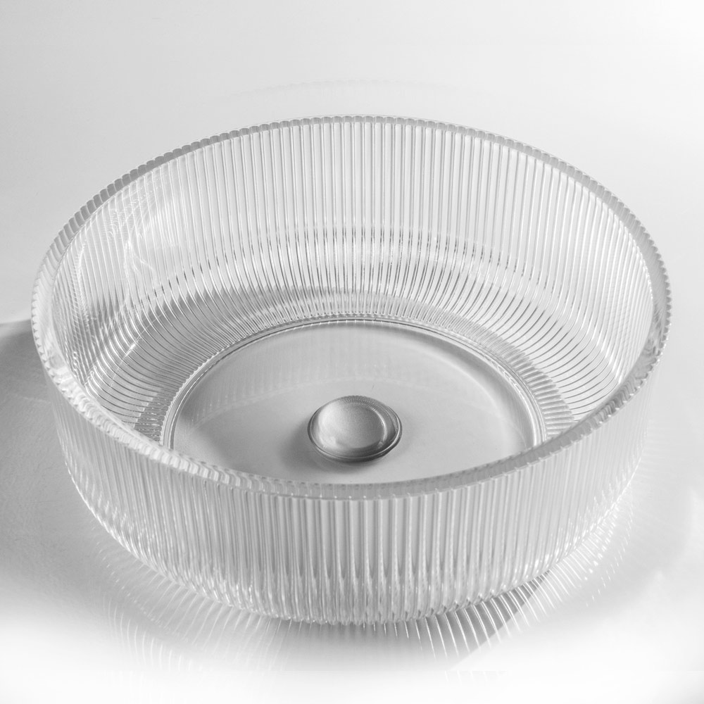 Chiuvetele sunt testate cu un instrument special pentru a verifica imperfecțiunile și/sau orice tensiune reziduală în sticlă. Microbulele sau microimpuritățile nu trebuie considerate ca defecte, ci ca o dovadă a măiestriei produsului. Lavoar din sticla suflata decorata manual.