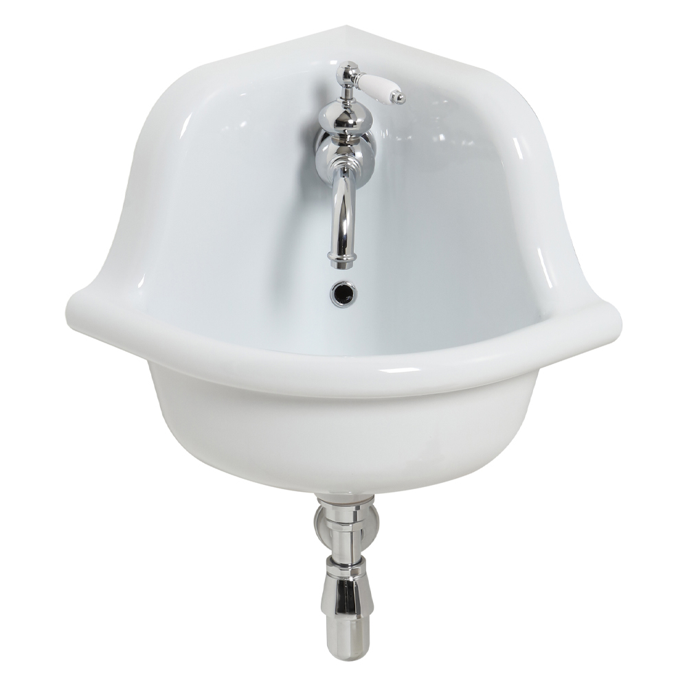 Chiuvetă de baie din colț, ceramică, în două culori, în stil vintage, de 42 cm.