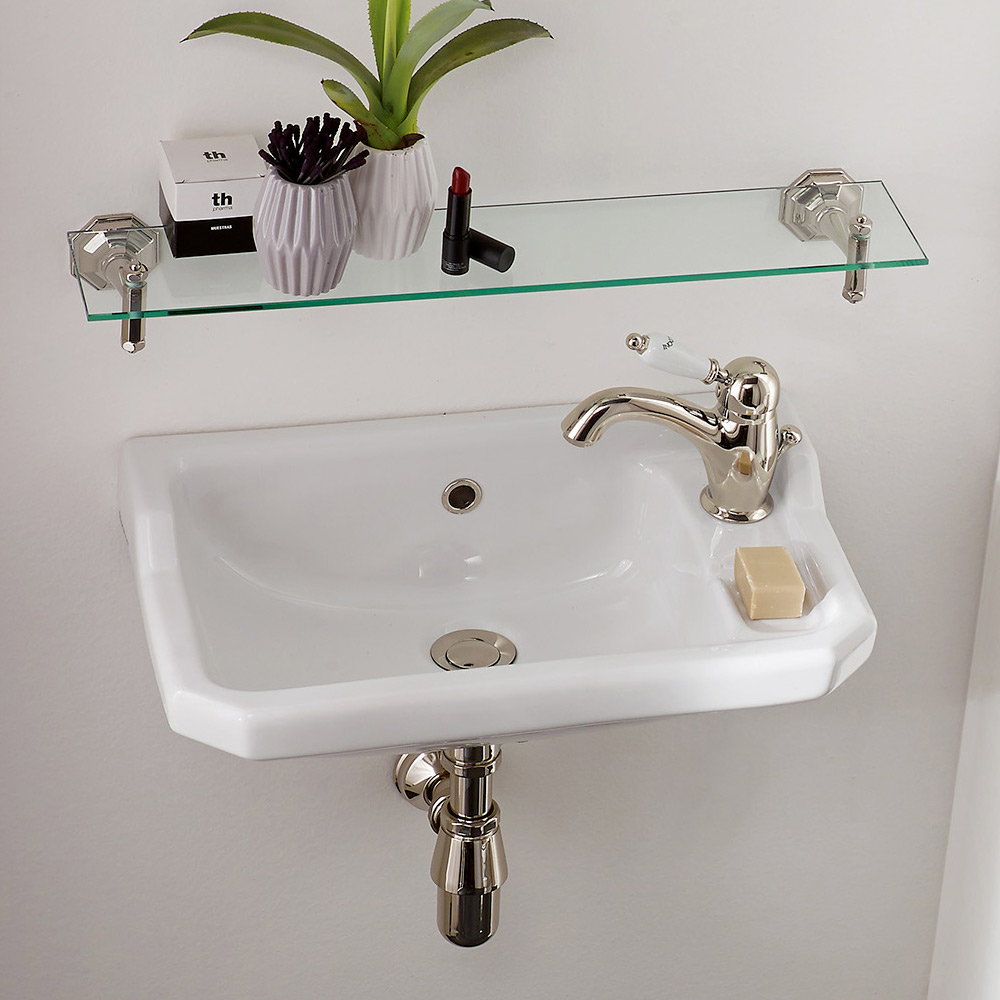 Lavoar rafinat și elegant, suspendat pe perete, gata pentru un accesoriu lateral de la robinet, L 500 mm. Acest articol este
