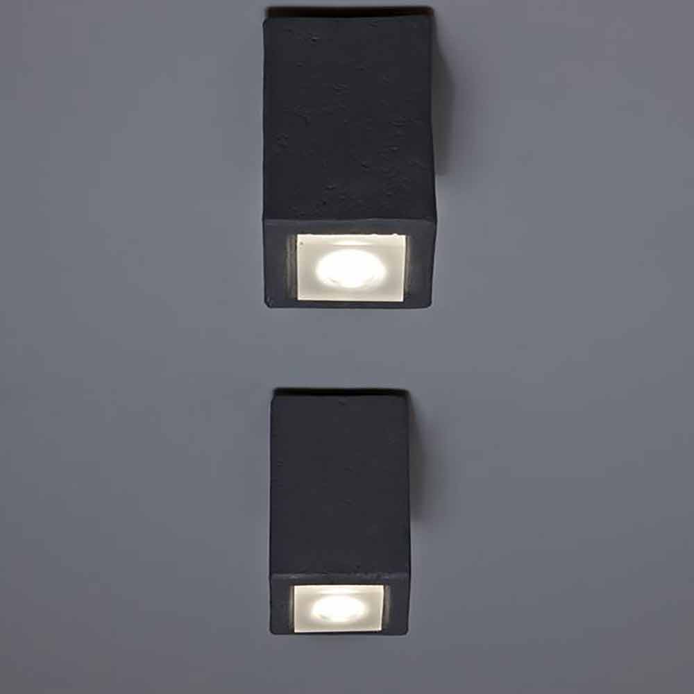 Această lampă de perete este realizată din teracotă pentru uz exterior, material ales pentru duritatea și rezistența sa, în timp ce difuzorul în pmma. Acest obiect este realizat manual și realizat în Italia.